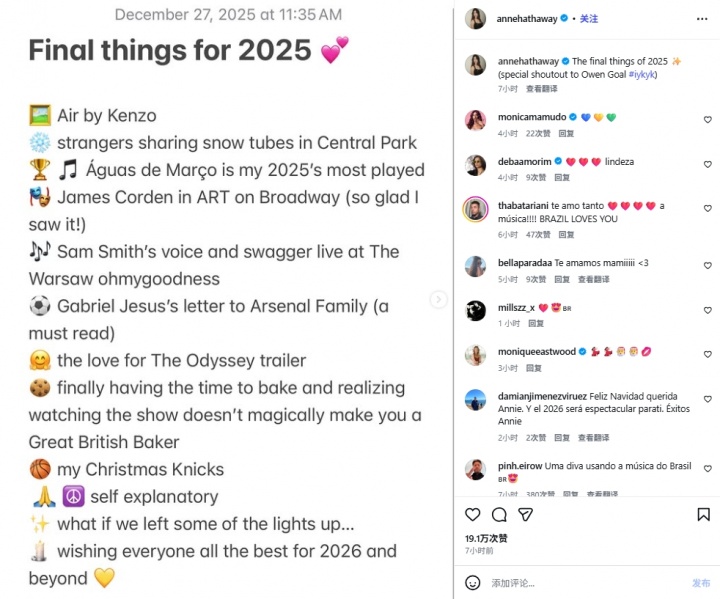 直播吧12月28日讯阿森纳2-1小胜布莱顿,继续英超领跑,著名好莱坞女演员、枪迷安妮·海瑟薇在社媒上发帖庆祝。