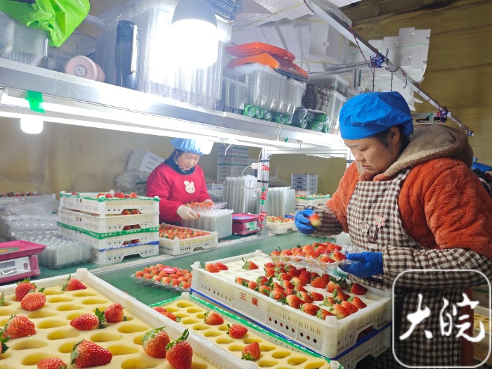 产量增长的背后,是昼夜不息的产业链条。当晚10点,记者走进灯火通明的长丰县三星果业分拣工厂,工人们正熟练地对草莓进行分拣、装盒。这些包装好的草莓,即将发往华东、华南等地的供销网络。