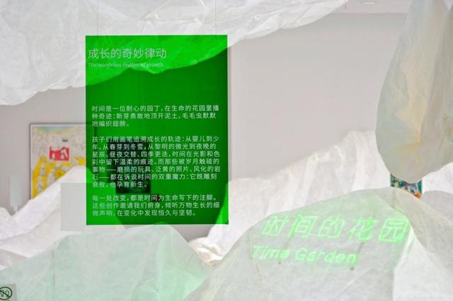 展厅中,“时间的花园”“时光魔法毯”“未来观测站”“记忆收藏夹”四个充满童话感的主题,精心呈现小艺术家们充满童真的作品,邀请不同年龄段的观众们来到这里,静静聆听孩子们用创意诉说的时空故事。