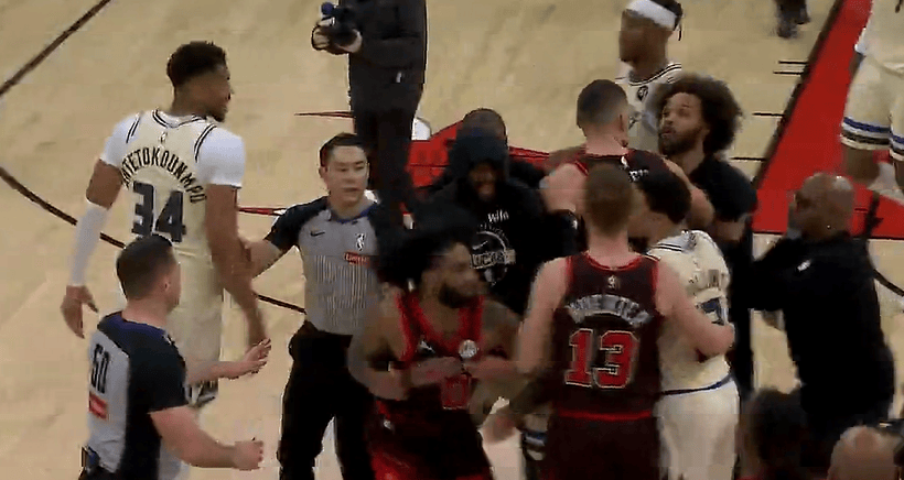 字母哥最后时刻领先9分大风车暴扣,随后两队险爆发冲突