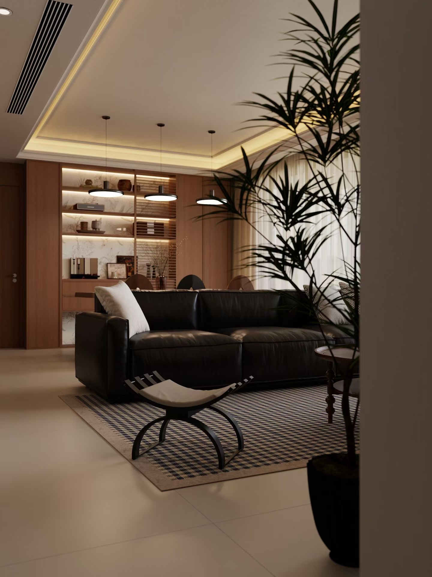 沙发是灵魂:深棕色的皮沙发,配上格纹单人椅,朋友来了往那一坐,舒服!皮沙发用久了,更有味道。