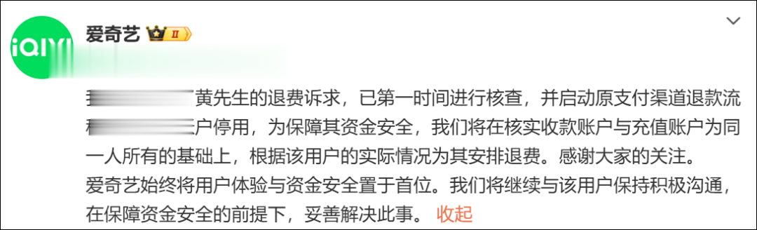 爱奇艺始终将用户体验与资金安全置于首位。我们将继续与该用户保持积极沟通,在保障资金安全的前提下,妥善解决此事。