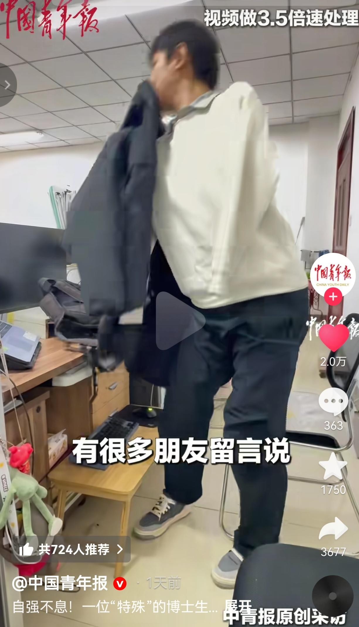 真的是身残志坚,让人佩服!无臂博士王海港:用双脚写人生,这股倔劲儿戳中所有人。 近日,山西晋中,有一位特殊的博士研究生,分享了自己的学习生活日常。只见他在太原理工大学实验室里,眼瞅着跟别人特别不一样,他就是数学学院博三的王海港,正在用双脚麻利地扒拉平板、敲键盘,那动作熟得很,可谁能想到,他是没了双臂后,熬了几十年,才把双脚练得这么“顶用”! 据当事人讲述,8岁那年,王海港不幸被高压电伤,俩胳膊就这么没了。 老话说的好“麻绳专挑细处断,厄运只找苦命人”,别的娃还在爸妈怀里撒娇,用小手捏着铅笔瞎画的时候,他得从头学:用脚吃饭、用脚穿衣、用脚写字。 刚练那阵儿,脚趾磨得全是血泡,腿麻得跟灌了铅似的,可他愣是咬着牙,一遍不行来两遍,两遍不行来十遍。到最后,一双脚比旁人的手还灵活。 这正应了那句“吃得苦中苦,方为人上人”,哪有啥平白无故的逆袭,全是熬出来的! 从小学到中学,再考上大学、读硕士、攻博士,王海港的求学路,比谁都难,可是,他的性格也比谁都犟。 别人用手翻书做笔记,他就用脚夹着笔在平板上写公式。别人随手就能操作电脑查资料,他就靠着特制设备,练了一遍又一遍,让双脚成了探索数学世界的“硬家伙”。“世上无难事,只怕有心人”,他这一路走来,就是最好的证明! 这次他把自己的学习日常拍出来分享,镜头里,他用脚穿衣服、用脚鼓捣电子设备的样子,他没有故意卖惨,却让好多网友看红了眼眶。 他说,分享这些,也是跟自己过去的经历好好和解一回。网友的留言里,全是佩服和感动:“看他这样,才知道啥叫真的自强不息”“他这双脚,撑起来的人生比好多人都宽”! 其实咱总挂在嘴边说“人生不易”,可跟王海港遇上的坎比起来,好多烦心事根本就是自寻烦恼。“ 困难像弹簧,你弱它就强”,他从没因为少了胳膊就自怨自艾,反倒把生活里的苦都变成了往上走的劲儿,用双脚一步一步朝着梦想挪。 这份在难处里不低头的倔劲儿,不光是他自己的荣光,更给了每个在日子里奔波的人一记暖乎乎的提醒:心里装着光,脚下就总有路!说到底,人生能走多远,从来不是天生的条件说了算,而是看你肯不肯坚持、有没有勇气。 王海港的故事,压根不是啥“苦情戏”,而是一堂实实在在的人生课。“宝剑锋从磨砺出,梅花香自苦寒来”,真正的厉害,从来不是没受过伤,而是带着伤还能使劲往前跑。 这也告诉咱们,遇上命运的刁难,与其怨天尤人、躺着摆烂,不如咬着牙往前走,那些打不倒咱的,到最后都会让咱变得更结实! 大家觉得呢?欢迎评论区讨论留言。