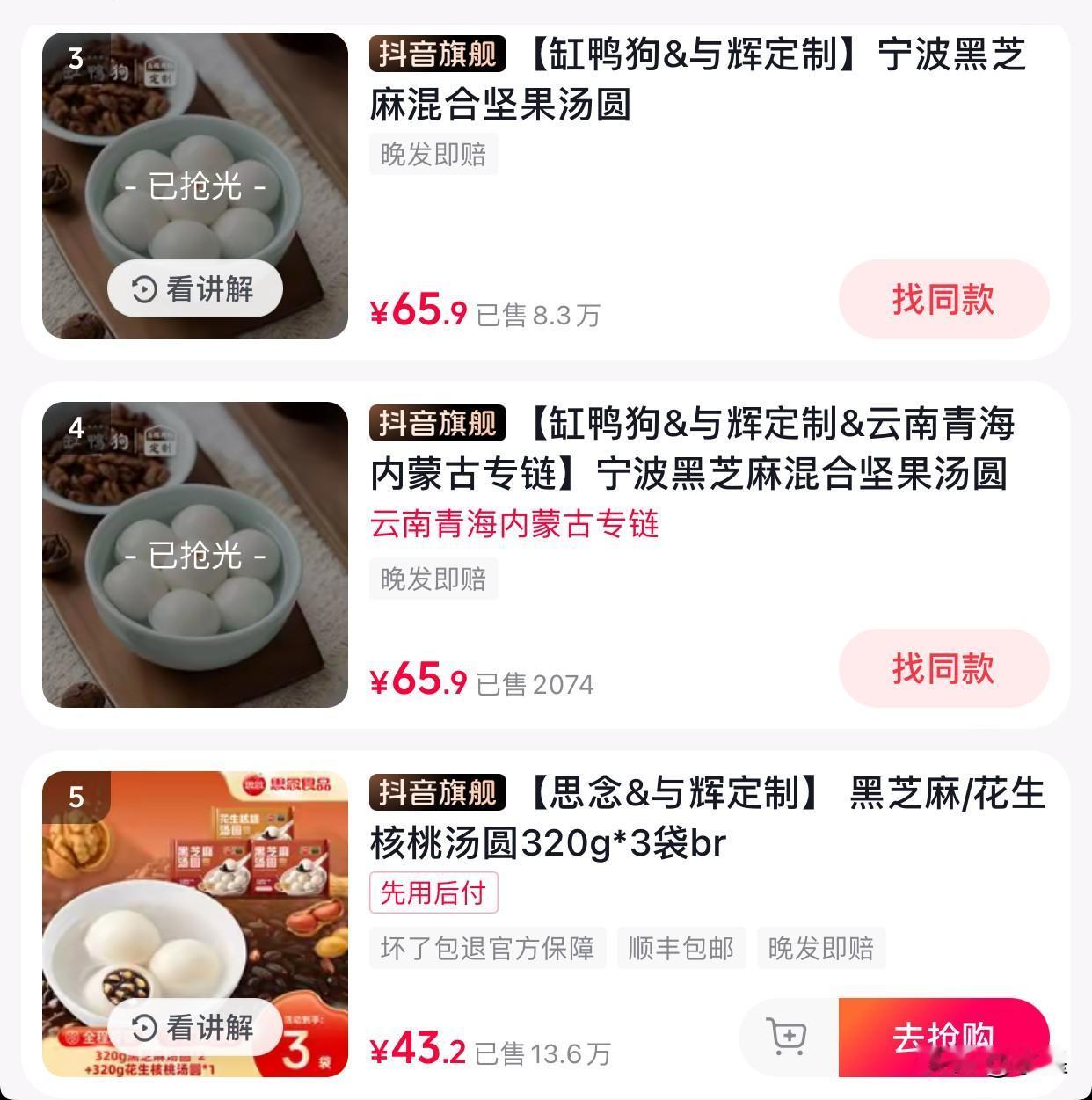 董宇辉今天又挨训了[笑哭] 三款定制新品+两款定制品返场 依然有消费者没买到想要的 于是就出现了这一幕 观众:董宇辉!看见你就烦! 宇辉:昨天还山盟海誓,今天就翻脸无情 观众:才一千单虾仁,这叫返场? 宇辉对着工作人员:听见没有,你们怎么回事! 然后对着观众:我说他们了!我肯定站你们这边的[捂脸] 观众:2万单磨毛四件套,为什么1.8万单就显示售完,剩下的去哪了?! 宇辉:清库存!马上清,你别急。 观众:董宇辉你头发跟鸡窝一样! 宇辉:好好好,今天就去剪 今天中午直播间的观众略显暴躁 董宇辉一副惹不起也躲不掉的样子 全程哄着,真的太好笑了[笑哭][偷笑] 新发售的三个定制品 磨毛四件套和定制汤圆已售空 定制坚果礼盒还剩一些 返场的虾仁没了,大米还有5万单 今天中午最大的收获 不是抢到了定制品 而是知道了一个抢定制品的小诀窍 如果你在开售后没抢到不用着急 半小时后再看,有意外收获[耶] 因为有一些消费者抢了但是没付款 半小时后就能清出来库存 这时候再买就能很轻松的买到 完全不用抢[耶]