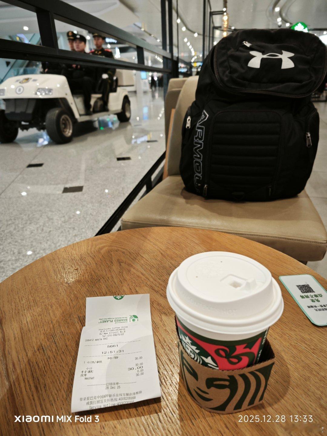大兴机场太大了,但还是很方便的,确实一下地铁就有厕所,但是我上回没有发现,还怪人家机场厕所修太远,害得我漏了尿,真是不应该怪机场,还是跟自己得了认知障碍有关吧。另外听说吃的东西很丰富,就专门过去吃小面,觉得像首都机场一样安检外面就有遇见小面,不过这个倒是没有找到,于是买了星巴克吃,一边吃一边看各种旅客的身影,心想那些外国人是看了小红书来中国打卡的吧,另外道长道姑也来了,就觉得很高兴。吃完咖啡才发现有西部马华牛肉面和康师傅牛肉面,另外还有图书馆和按摩空间,太遗憾了,其实机场指示牌上就有指路的,肯定还是认知障碍问题。二零二五年最后一个礼拜天就这样在开心和遗憾中度过去了。
