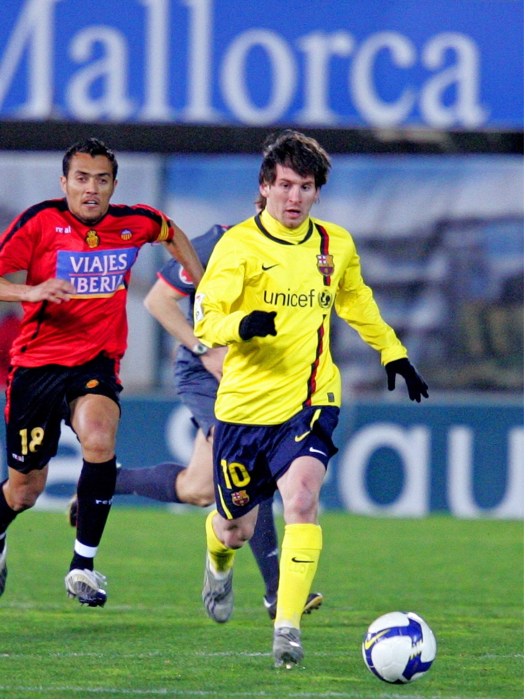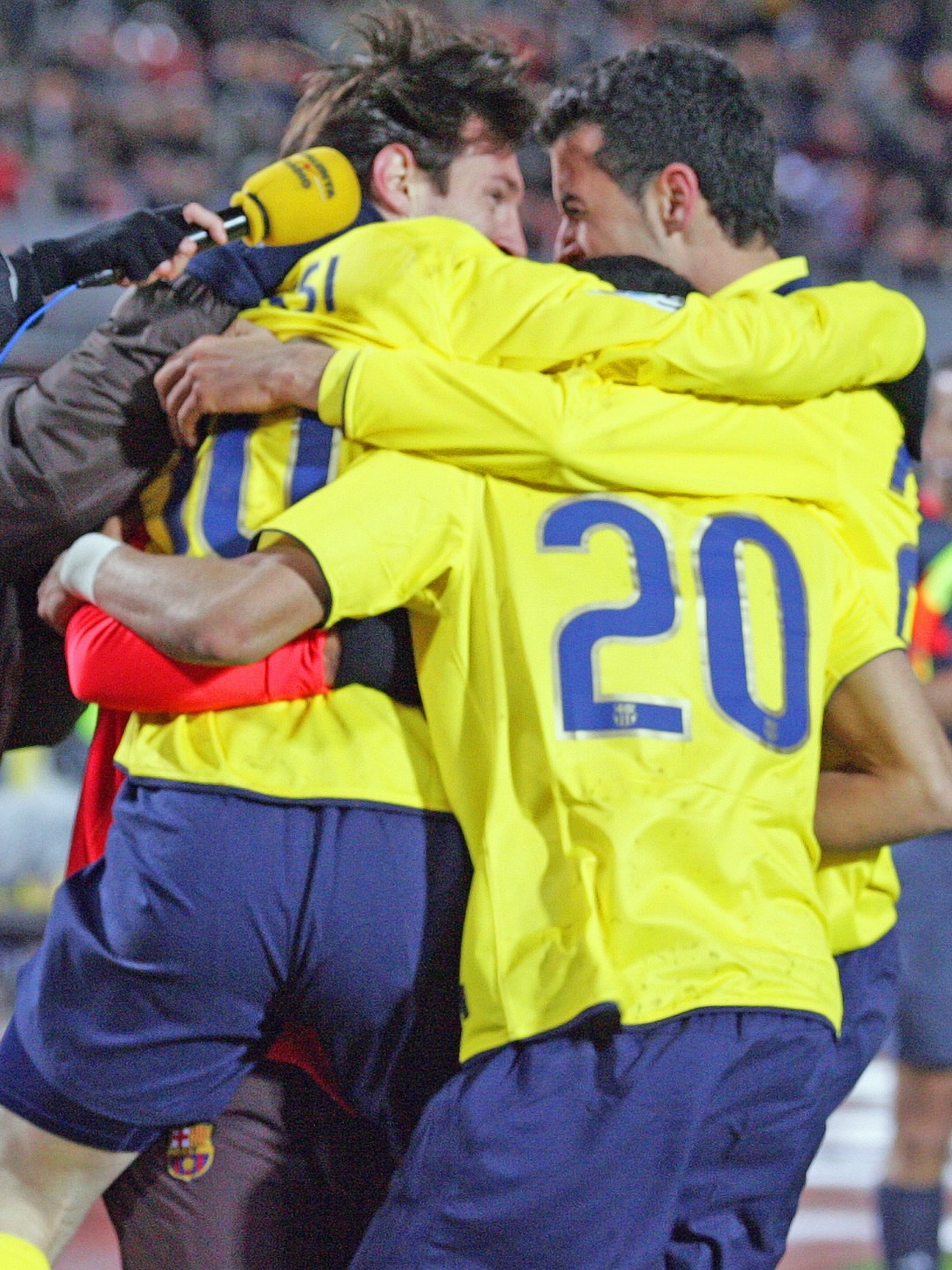 These are very rare photos of Messi from the second leg of the 2008/2009 Copa del Rey semi-final against Mallorca. He started the match on the bench, came on in the second half and scored the decisive goal that secured Barcelona a place in the Copa del Rey final.