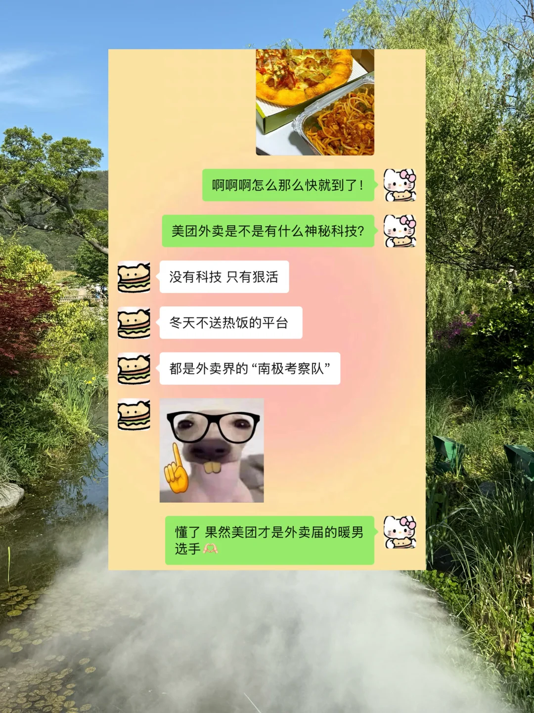 不小心把男朋友培养成了梗王 现在我俩的日常比脱口秀还密 连吵架都像在说相声 朋友说我们谈恋爱谈出了喜剧效果[亲一个R] ——————————— 冬天点外卖简直像开盲盒 不过别人开的是热饭盲盒 我开的是冷饭彩票 一顿操作猛如虎 饭到嘴里透心凉 这顿饭算是白吃了 还好男朋友懂 直接甩过来一个美团订单 好家伙 芝士🧀还能拉丝! 骑手怕不是会瞬移 有些外卖慢得仿佛 骑手在小区门口下了盘象棋才出发 冬天点外卖我选黄色!! 因为我的嘴和我的胃都不想受刑[心心眼R] 恋爱技巧 聊天套路 聊天记录 让男友瞬间上头 发给对象看 情侣搞笑日常 情侣聊天表情包 我和男朋友的日常 恋爱小技巧 恋爱日常 冬天点外卖还是美团快 拒绝冷外卖