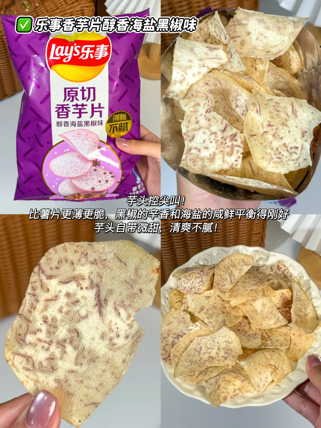 芋头控尖叫!比薯片更薄更脆,黑椒的辛香和海盐的咸鲜平衡得刚好,芋头自带微甜,清爽不腻!