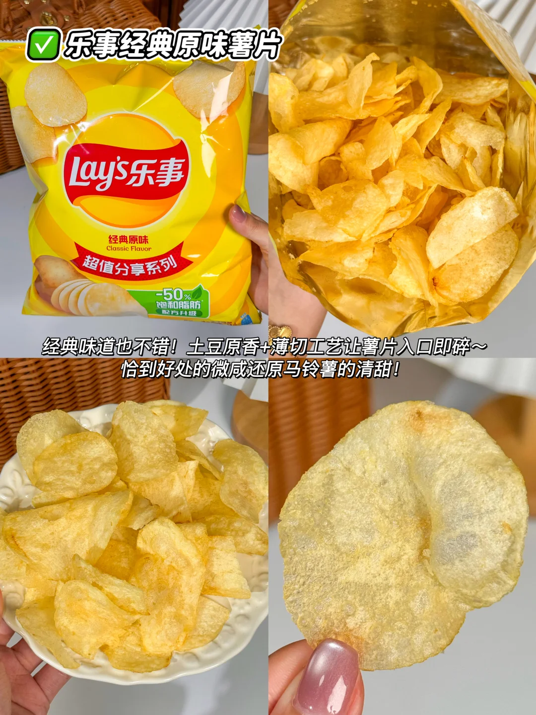 经典味道也不错!撕开包装就是扑鼻的土豆原香,薄切工艺让薯片入口即碎,咸度恰到好处,还原马铃薯的清甜!