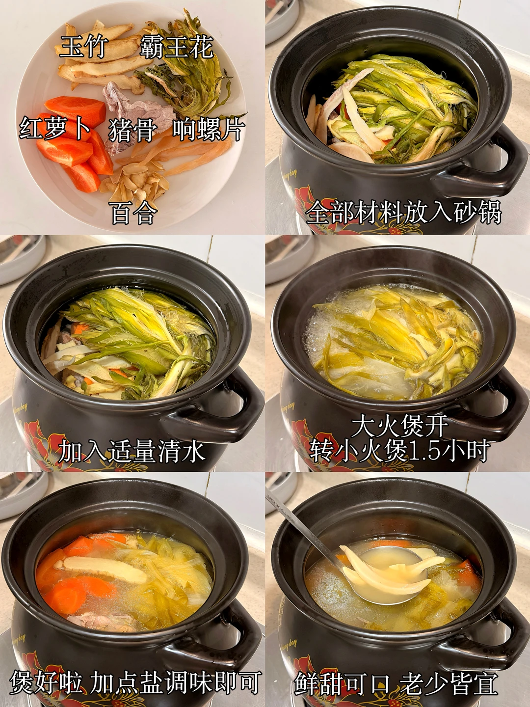 霸王花、响螺肉、玉竹、红萝卜、百合、猪骨