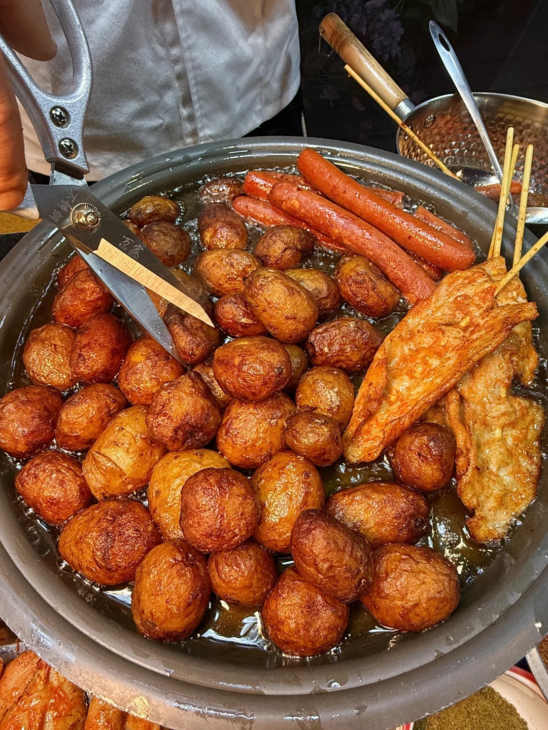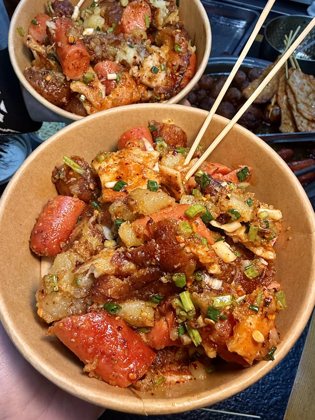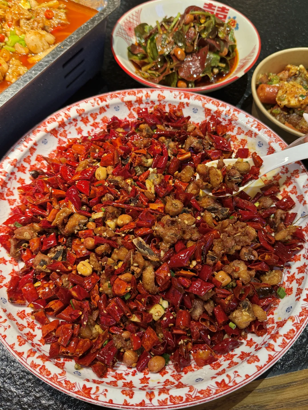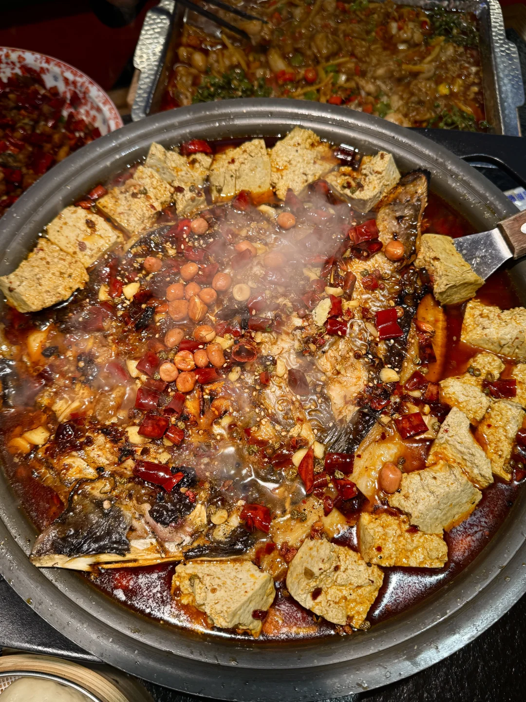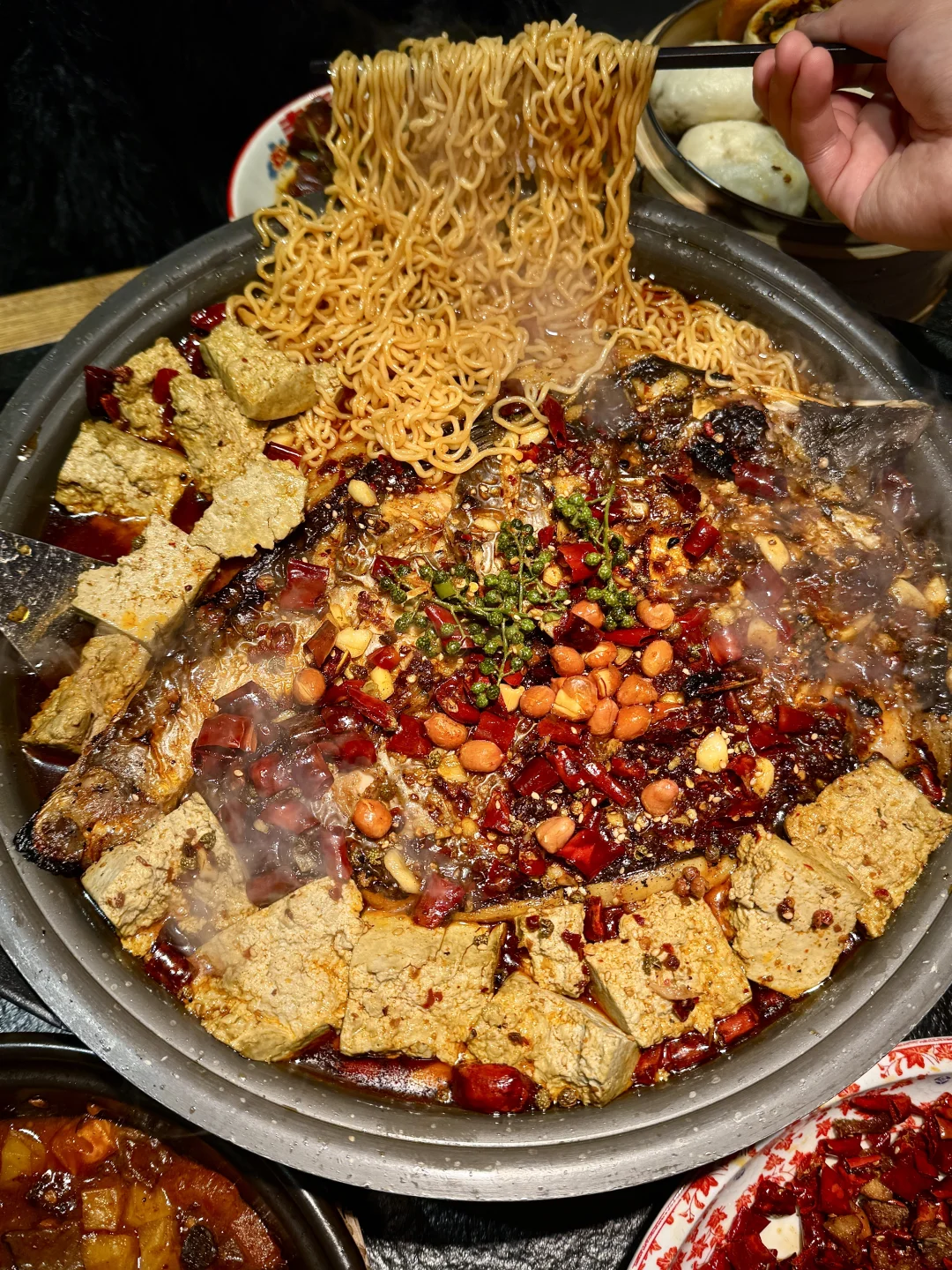 woooo这个月n刷的烤鱼!!!味道贼正!脆皮烤鱼!里面的豆花也很入味 我个人喜欢加泡面香绝了😭 还有剪刀土豆和嬢嬢手工做的酱肉包,每一个透着油相当美味!!!! 辣子鸡、牛蛙、番茄牛腩…辣的不辣的都好吃!