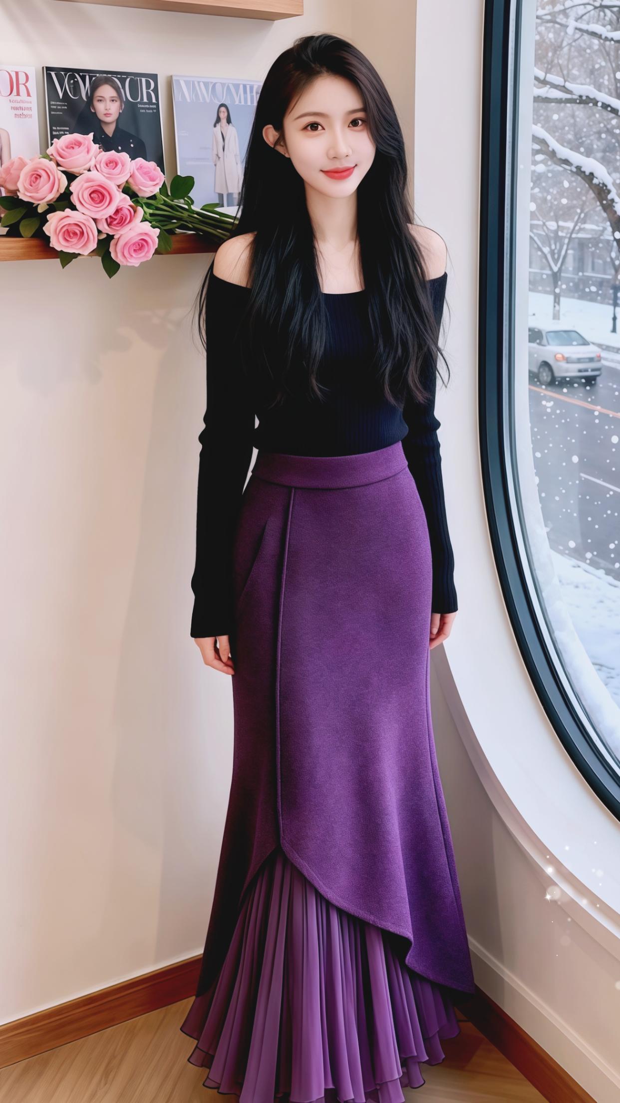 穿搭 女装 时尚 半身裙 紫色
