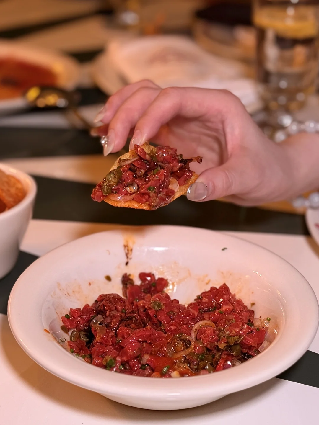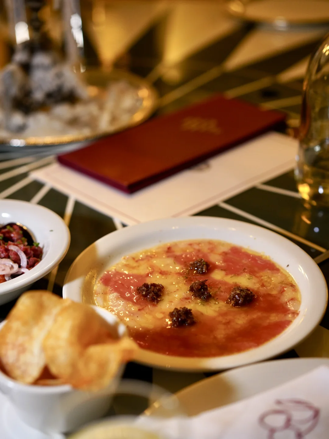 最近风很大新开的意大利小馆 上旬刚开去的 据说那会已经下旬之前全订满 心想这么火爆于是抱很大期待 结果差强人意有些失望 只有三样确实不错值得一吃: 辣牛肉塔塔 炭烤半熟汕头南澳岛手钓鱿鱼 提拉米苏冰糕 以及手工意饺里的蛤蜊好吃 其它真的实在没吃明白调味…