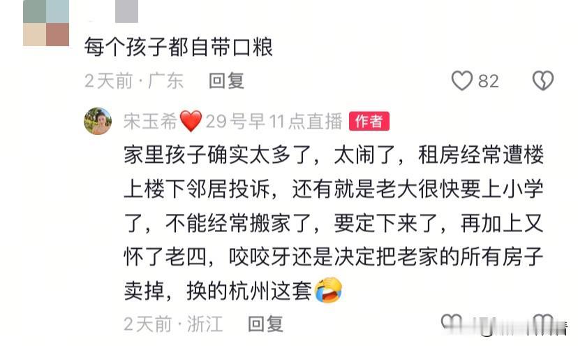 宋玉希说,家里孩子太多,太闹了,经常遭楼上楼下投诉,所以她跟他老公就咬咬牙卖掉了老家的五套房,在杭州付了个首付,贷款买了这套别墅。 在杭州买套别墅那价格肯定比她老家贵很多倍,本以为卖了五套可以全款,没想到这样还是贷款的,她婆婆还给她出钱了,这样算来,这房价确实不便宜。 这确实是一分钱一分货,别墅随便孩子们吵闹,也不会有人投诉了,从搬家这天办的仪式可以看出,厨房比之前的大了一倍还多,客厅那就更不用说了,外面的院子也装修的很漂亮,这次她们应该够住了。