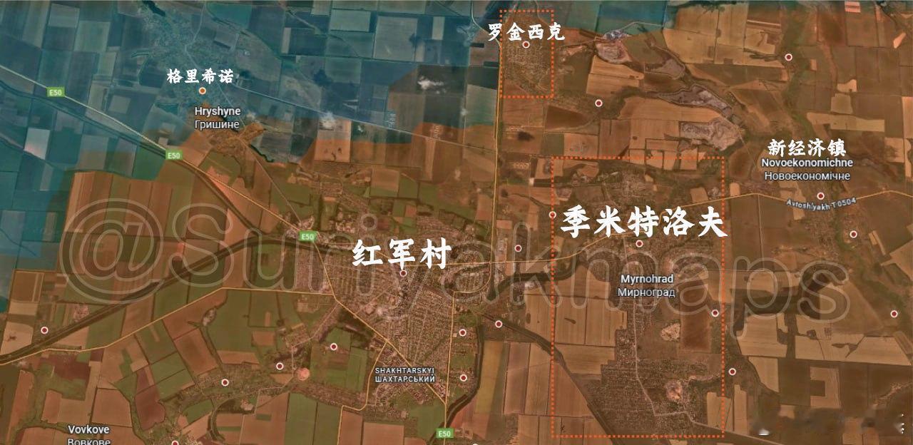 俄军总参谋长格拉西莫夫报告称,季米特洛夫和胡里艾伯勒均被解放,顿河君士坦丁罗夫卡一半也被俄军占领。普京表示,如果基辅不愿和平解决问题,俄罗斯将以武力解决中央军区的所有任务。鉴于俄军进攻的步伐,俄罗斯等待乌克兰武装部队自动撤出的兴趣已经降至零。乌克兰媒体也承认季米特洛夫、罗金西克和胡里艾伯勒被俄军完全控制,“在消灭了乌克兰军队的最后一个抵抗中心后,俄军完全控制了季米特洛夫市和罗金西克镇。(图2)”“在消灭了乌克兰军队的最后一个抵抗中心后,俄军完全控制了胡里艾伯勒镇。此外,俄军继续在该镇以南巩固新的阵地。(图3)”