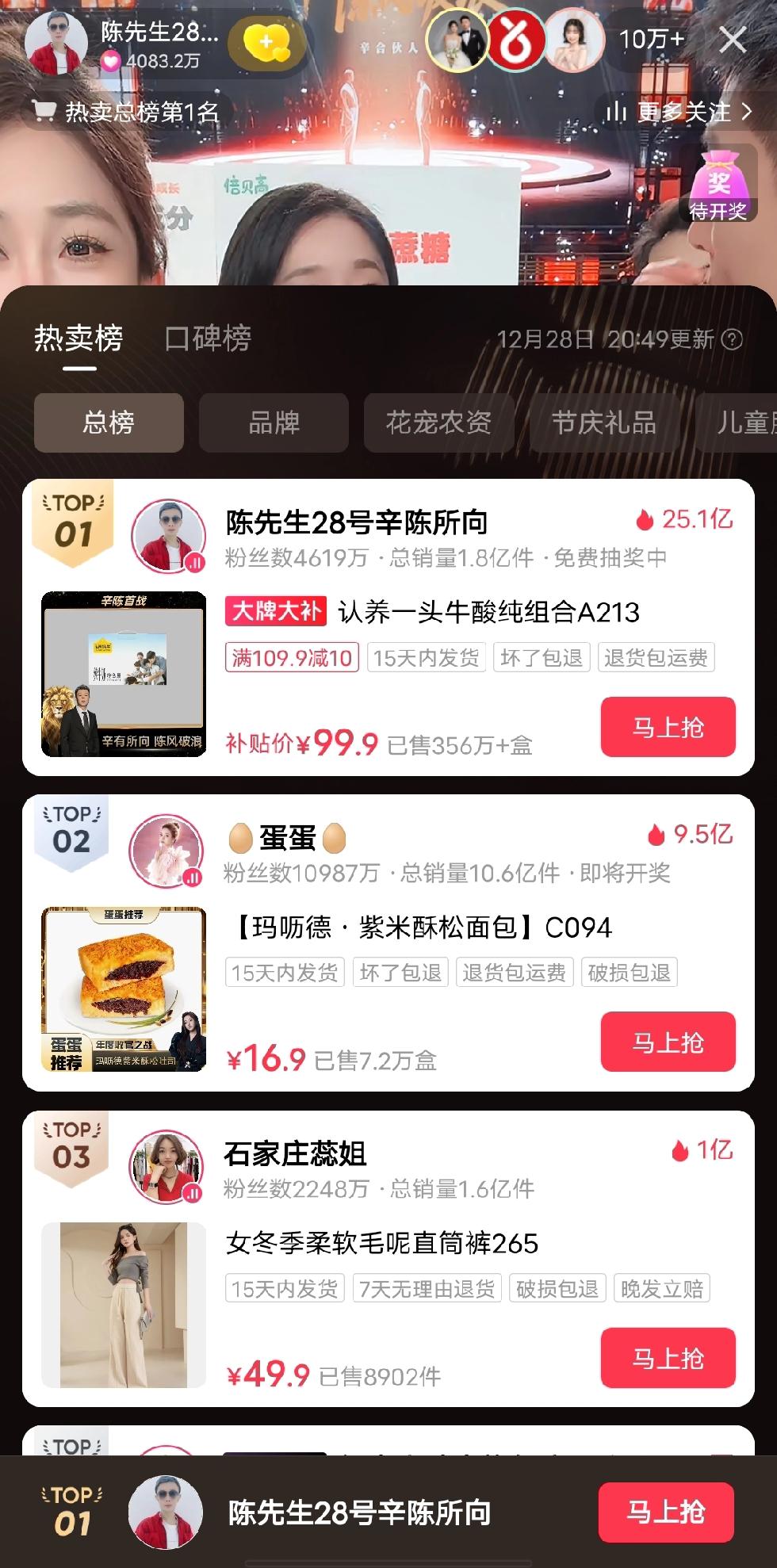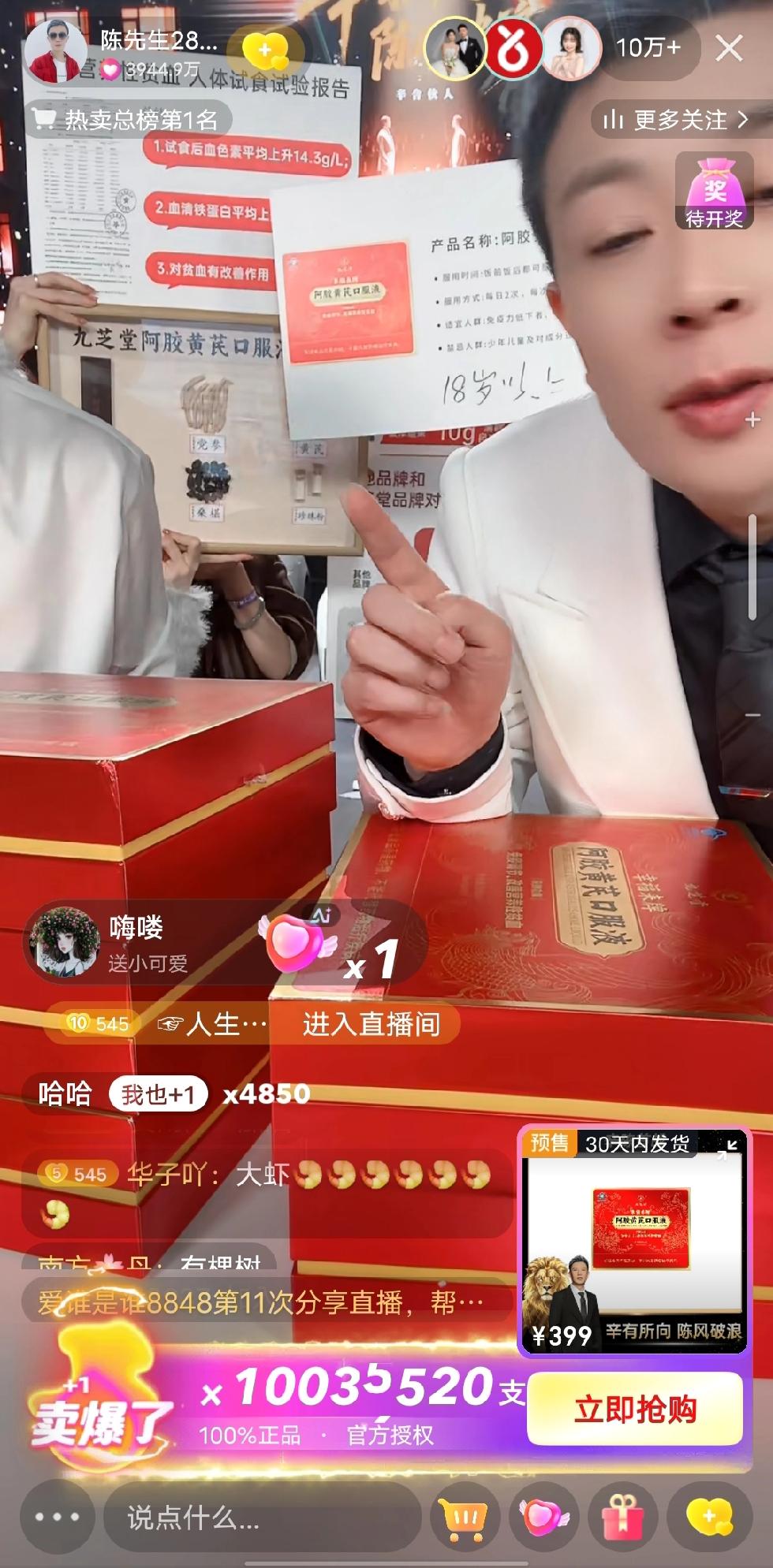陈先生加入辛选后的首场直播,打破了多项纪录。尽管最终销售额并未公布,但直播中途就