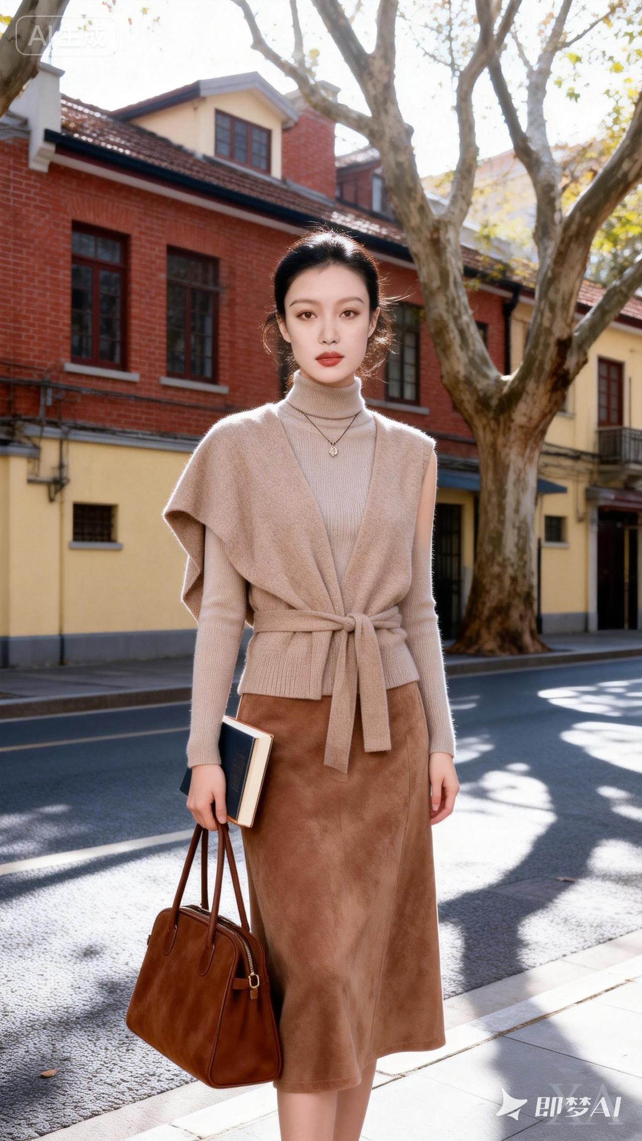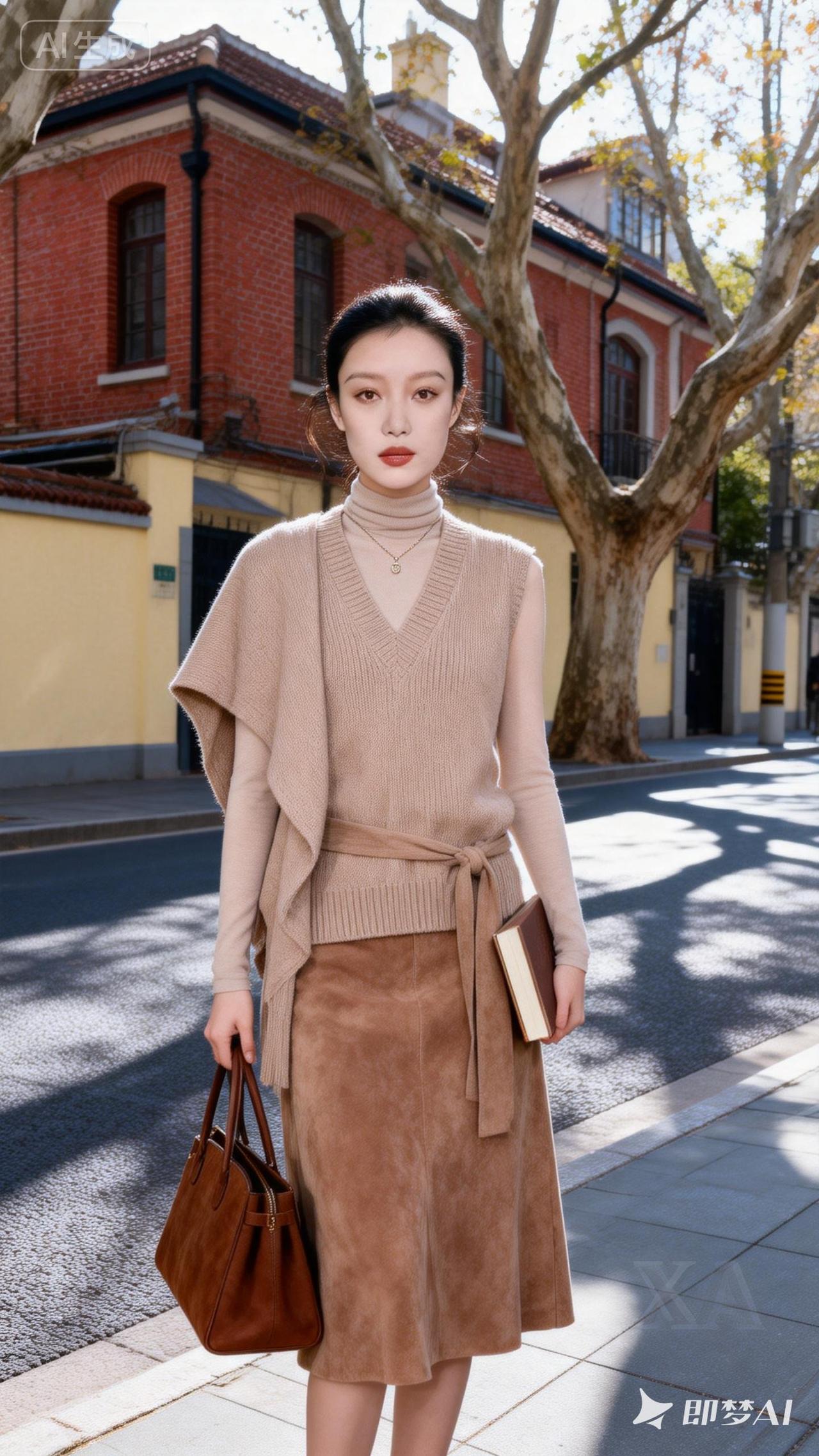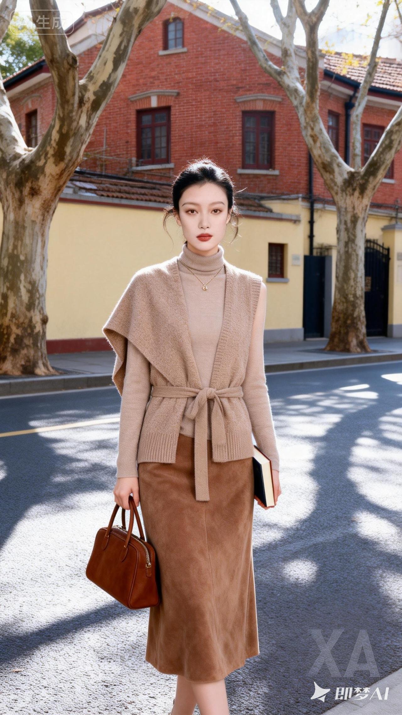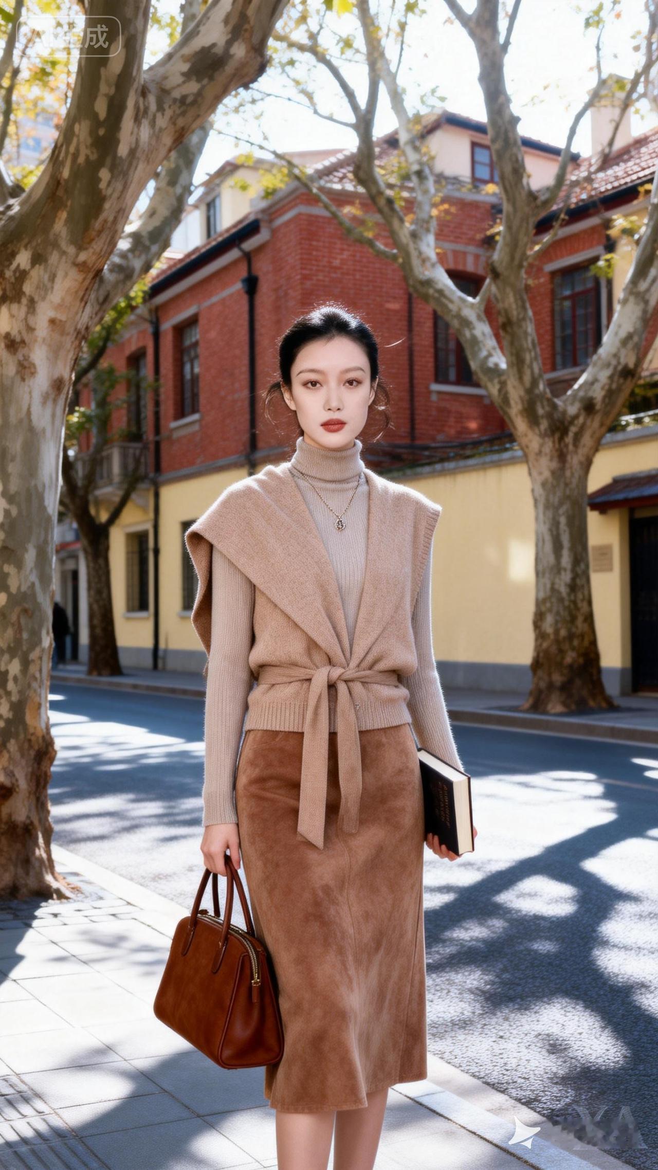 秋日穿搭指南:复古毛衣+棕色半身裙,优雅气质满满!