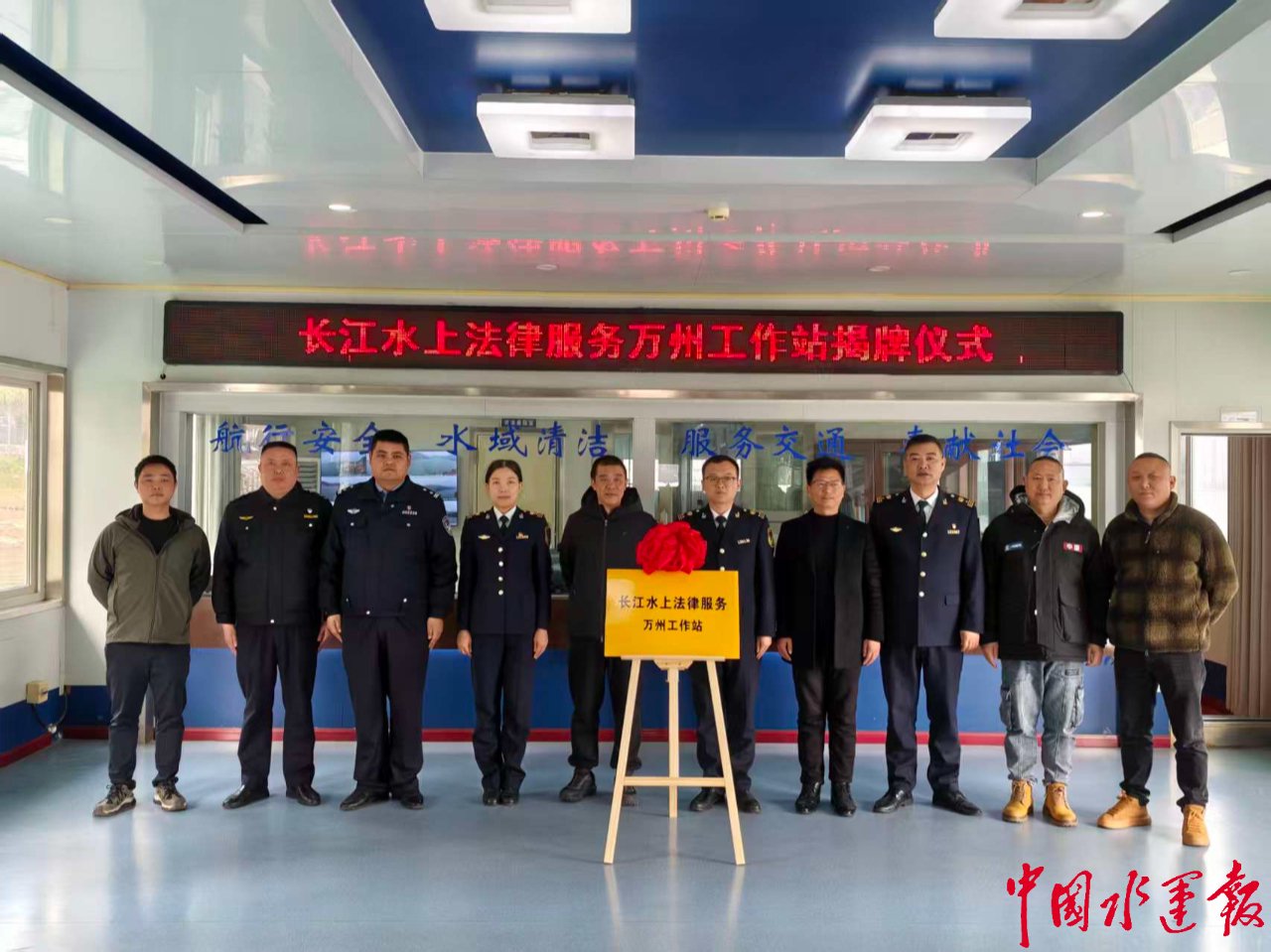 12月26日,长江水上法律服务万州工作站(简称“工作站”)在重庆万州海事处龙宝执法大队基地正式揭牌成立。工作站是交通运输部长江航务管理局统一部署下,深化长江万州段法治建设、优化法律服务的重要举措,旨在为航运企业及船员提供全方位、高质量的法律保障。