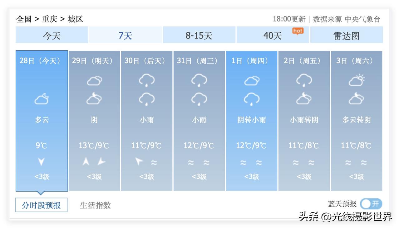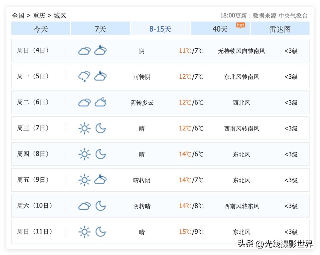 莫名有点伤感啊!12月29日到1月5日,重庆主城区,阴雨连绵,凄风冷雨,降雨降温……哎!如果12月28日没有晒太阳,下次重庆人再晒太阳,可能就是2026年1月6日……或者,逃离重庆主城区,去云南海南广东也许…… 12月31日,跨年夜,重庆主城区,小雨……不知道解放碑到时候……不知道深夜的重庆跨年夜无人机灯光秀表演……能否正常举办……啊啊啊!长寿湖的这个天空剧院的焰火晚会……不知道…… 1月1日,重庆阴转小雨…… 1月2日,重庆小雨转阴…… 好吧……这个元旦节,重庆人,特别适合去云南海南旅游……特别适合去川西看雪玩雪滑雪,四姑娘山,毕棚沟……不知道重庆的仙女山和金佛山,这个元旦节会不会下雪呢?!