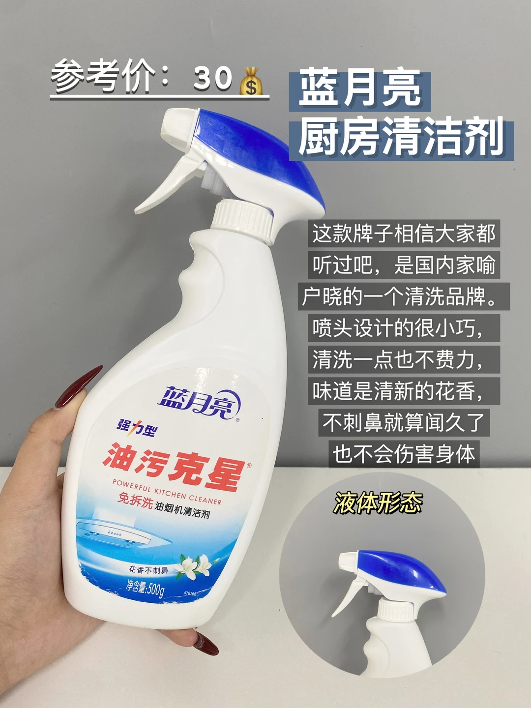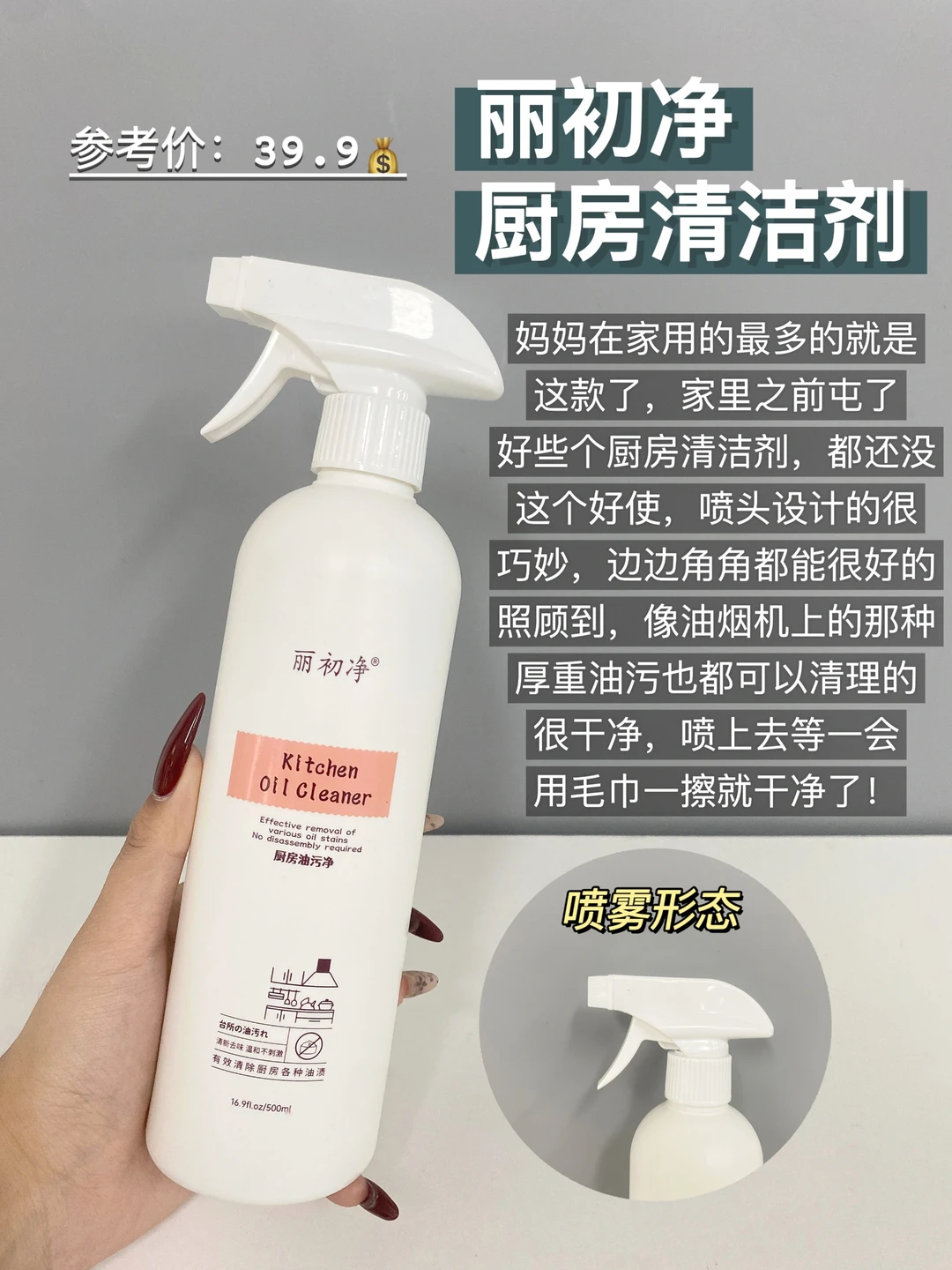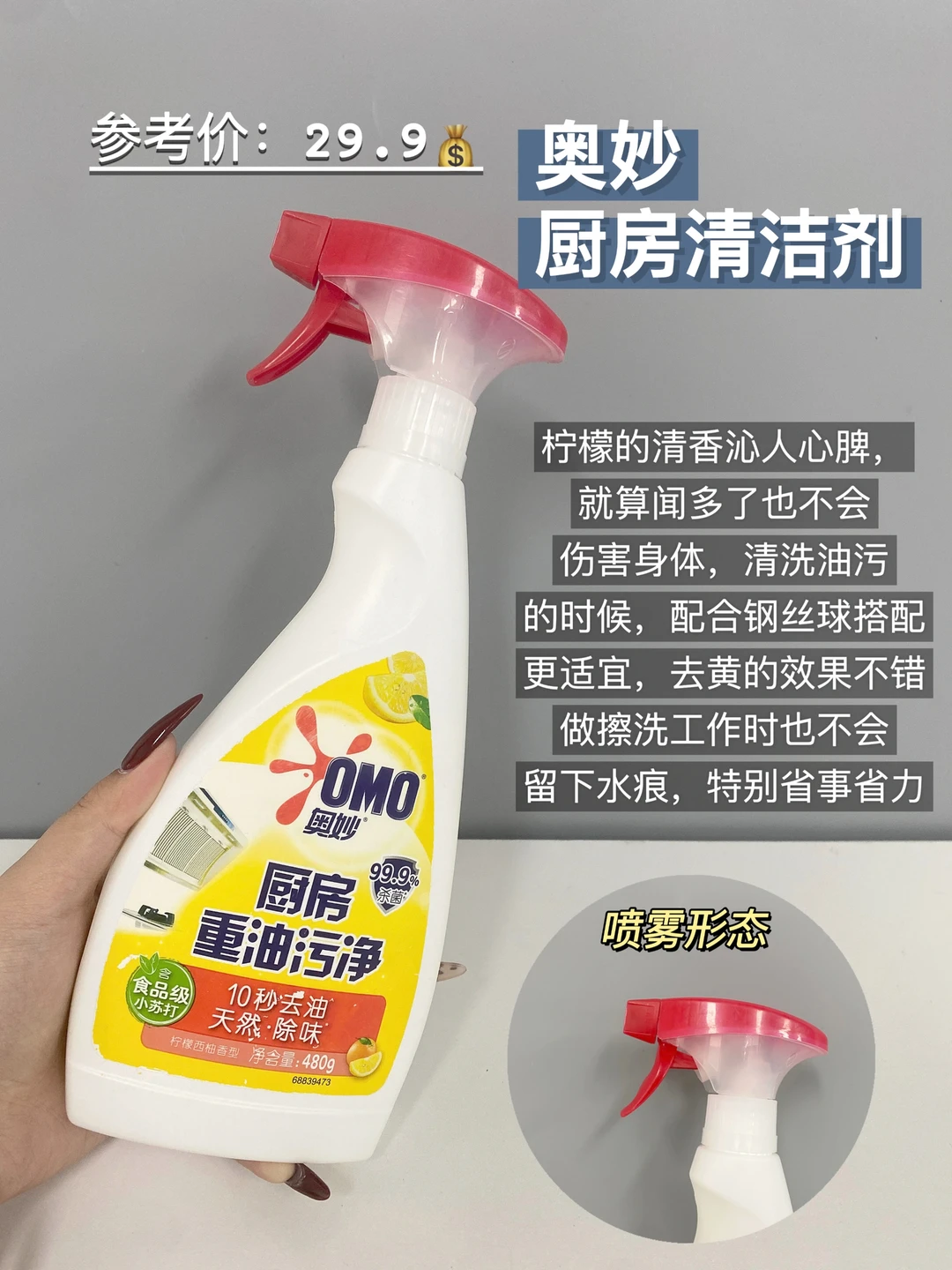 很多人没有使用清洁剂之前都是用洗洁精配合钢丝球清洗的这样清洗不仅时间效率慢。清洁能力也会大打折扣,对于这种状况我觉得还是买一瓶好用的厨房清洁剂会方便很多。喷上去等待一会一擦就可以很干净了!