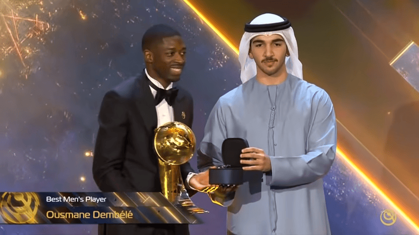 虎扑12月29日讯环球足球奖年度颁奖典礼今晚举行,男足最佳球员归属于巴黎前锋奥斯曼-登贝莱