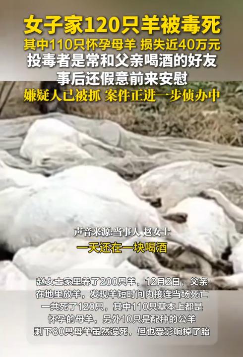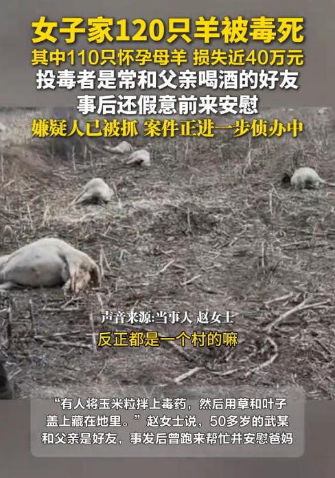 “坏透了!”山西晋中,一女子家中养了200只羊,其中有一半已经怀孕,谁知竟然被人下毒害死了120只,还有80只羊出现了掉胎现象,损失高达38.8万元。女子和家人急坏了,立即报了警。然而随着警方调查,发现凶手竟然就是父亲的好友。(来源:安徽商报) 据悉,赵女士家养了200只羊,其中母羊有190只,还有10只是配种的公羊。 今年12月2日,赵女士的父亲去地里放羊。由于现在村子里的地上都没什么庄稼,所以赵女士父亲把羊群赶到了邻居们的地里吃草。 可谁曾想,就在赵女士父亲坐下休息时,突然看到成片的羊倒在了地上抽搐。赵女士父亲立即前去查看,发现羊群像是集体中毒了。 这下赵女士的父亲急坏了,这可是200只羊,要是都中毒死了,损失是家里无法承受的。因为这些羊是赵女士父亲向亲友借钱买的,所以要还债,而且还要供赵女士的弟弟妹妹们读书。 可现在羊群死了一大半,这让赵女士一家如何接受?于是赵女士报了警。据赵女士统计,初步损失已经达到了38.8万元。 由于赵女士家的羊大批量死亡,村里人也被惊动了,不少村民过来查看情况。作为赵女士父亲的好友,武某也来到了现场,他还安慰了赵女士父亲,让他看开点。 没过多久,警方就来到了现场查看情况,很快便发现了田地中居然有不少有毒的玉米粒,还用草和叶子盖着。 警方推断这是有人故意投毒,随着调查的深入,警方很快就锁定了投毒人就是武某,并对其采取了刑事强制措施。 据赵女士所述,武某是其父亲的好友,二人经常一起喝酒,但不知道为何武某会投毒。如果是因为破坏庄稼,但现在地里没有什么庄稼,而且父亲也和村里人打了招呼的。 在武某被抓后,武某的儿子曾到赵女士家说明了情况,表示投毒并不是针对赵女士家,同时还表示愿意赔偿,但之后武某的儿子又反悔了。 目前,检察院已经对武某作出了批捕决定。 有人认为,肯定是女子家的羊跑人家地里吃庄稼了,而两家又是朋友,不好意思说,所以才投毒。 还有人认为,这种投毒肯定是故意的,针对性也很强,必须严惩。 那从法律角度来讲,武某的行为该如何定性? 不管武某与赵女士的父亲有何矛盾,其在田地里投放毒玉米粒,该行为就已经构成了投毒罪。 不过,投毒罪目前已经被改名了,改成了投放危险物质罪,但罪行并没有改。 《刑法》第114条规定,放火、决水、爆炸以及投放毒害性、放射性、传染病病原体等物质或者以其他危险方法危害公共安全,尚未造成严重后果的,处3~10年有期徒刑。 值得注意的事,该罪名只要是危险行为足以危害到公共安全,就可刑事立案追诉。是否造成实质性严重后果,并非立案标准,而是量刑时的判断标准。 那什么是“严重后果”? 按照规定,严重后果通常表现为: 第一,致人重伤; 第二,致人死亡; 第三,致使公私财物遭受重大损失的。 其中,公私财物重大损失一般会参照故意毁坏财物的量刑标准以及当地的经济水平决定。 按照故意毁坏财物的量刑标准,5万元以上已经是数额巨大的标准了。 因此,武某的行为已经造成了严重后果。 《刑法》第115条规定,放火、决水、爆炸以及投放毒害性、放射性、传染病病原体等物质或者以其他危险方法致人重伤、死亡或者使公私财产遭受重大损失的,处10年以上有期徒刑、无期徒刑或者死刑。 由此可见,投放危险物质罪的最高刑可以是死刑,但就武某的情况来说,死刑是不太可能的。 对此,您怎么看?欢迎留言交流。