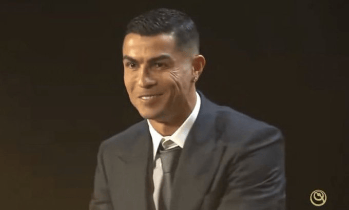 C罗上台发表获奖感言:“大家晚上好。感谢环球足球奖,很高兴在这场盛典上看到这么多体育界的重要人物。这是我最喜欢的颁奖典礼之一,因为我能在这里看到像我妻子这样美好的人。”