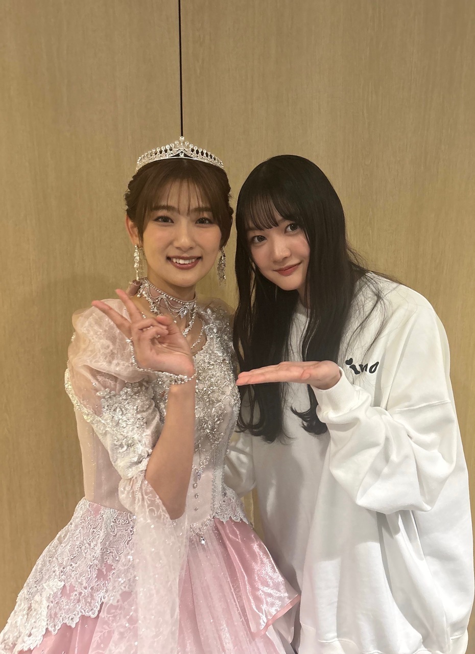 目黒陽色「井上さん改めまして、ご卒業おめでとうございます🌸一緒に活動させていただいた期間は短く、お話する機会が少なかったものの、こち星やライブなどで少しでもご一緒させていただいた貴重な時間はすべて私にとって宝物です。短い間の中でも私から見えていた井上さんはずっと、愛される人には理由があるのだと証明され続けている方でした。心から尊敬しています。」