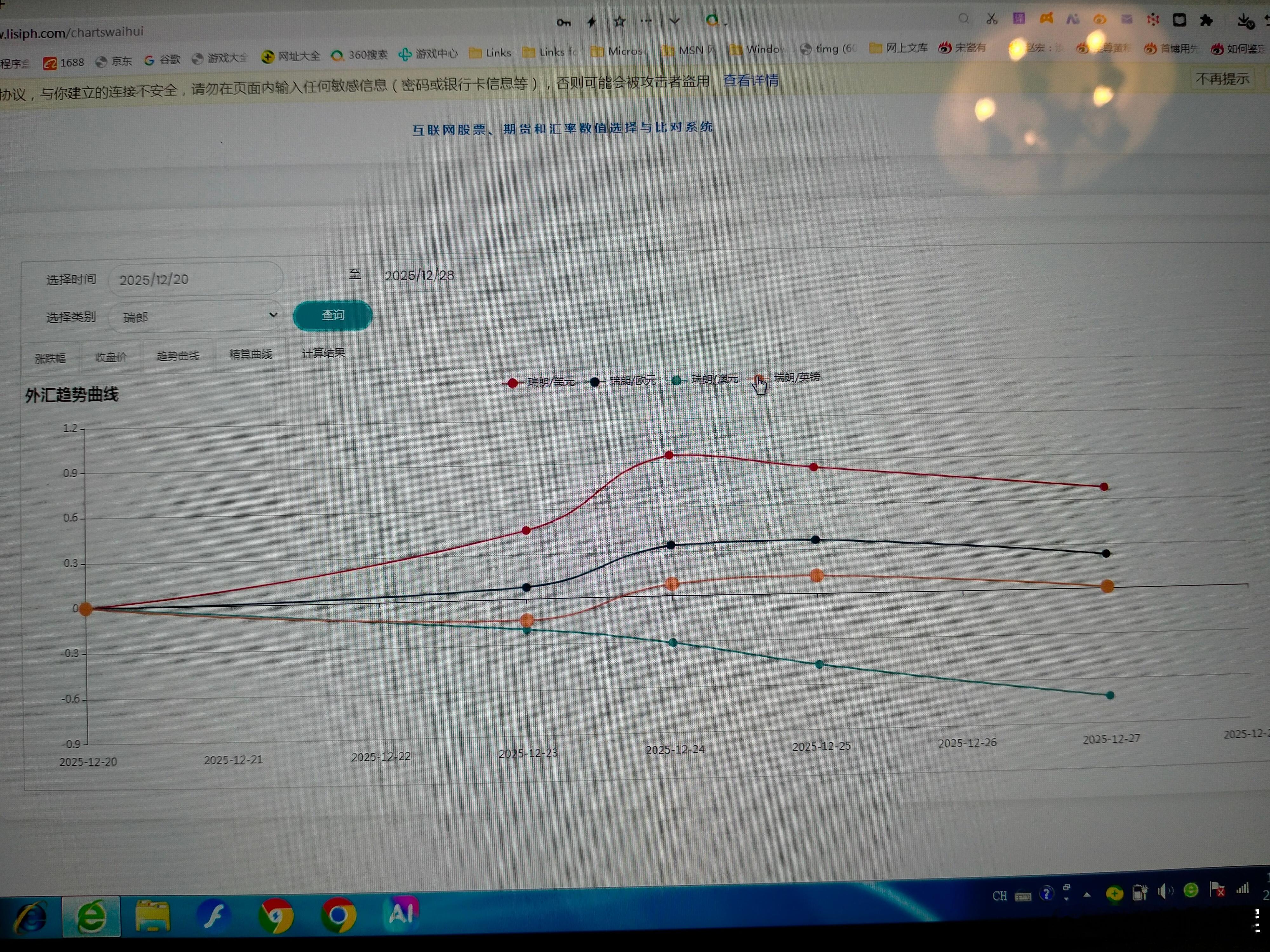 本周主要汇率走势 本周澳元最强,日元和瑞郎比较强,美元最弱,欧元次之。 图一是美元本周的涨跌幅曲线,跌幅大于涨幅。图二是趋势曲线,兑其他几个主要币种都是下跌的。看来难说美元启稳吧? 图三是澳元本周的趋势曲线,澳元本周快节奏的上涨,是不是下周会调整呢? 图四是欧元本周的趋势曲线,图五是英镑本周的趋势曲线,图六是瑞郎本周的趋势曲线,瑞郎继续强,欧元持续弱,差不多也该转换一下节奏了吧? 图七是兑日元的趋势曲线,日元本周反弹,估计持续性不会太久。 图八是兑加元的趋势曲线,加元本周比较强一点。看看能不能持续吧? 图九是正向和反向态势图,基本上没有什么变化,说明涨跌幅都不大。还是看看美元能不能稳住吧?