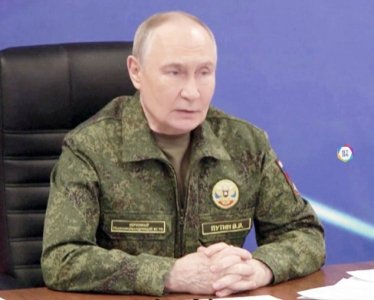 普京27日在俄联合部队集群某指挥所讲话。图据新华社客户端