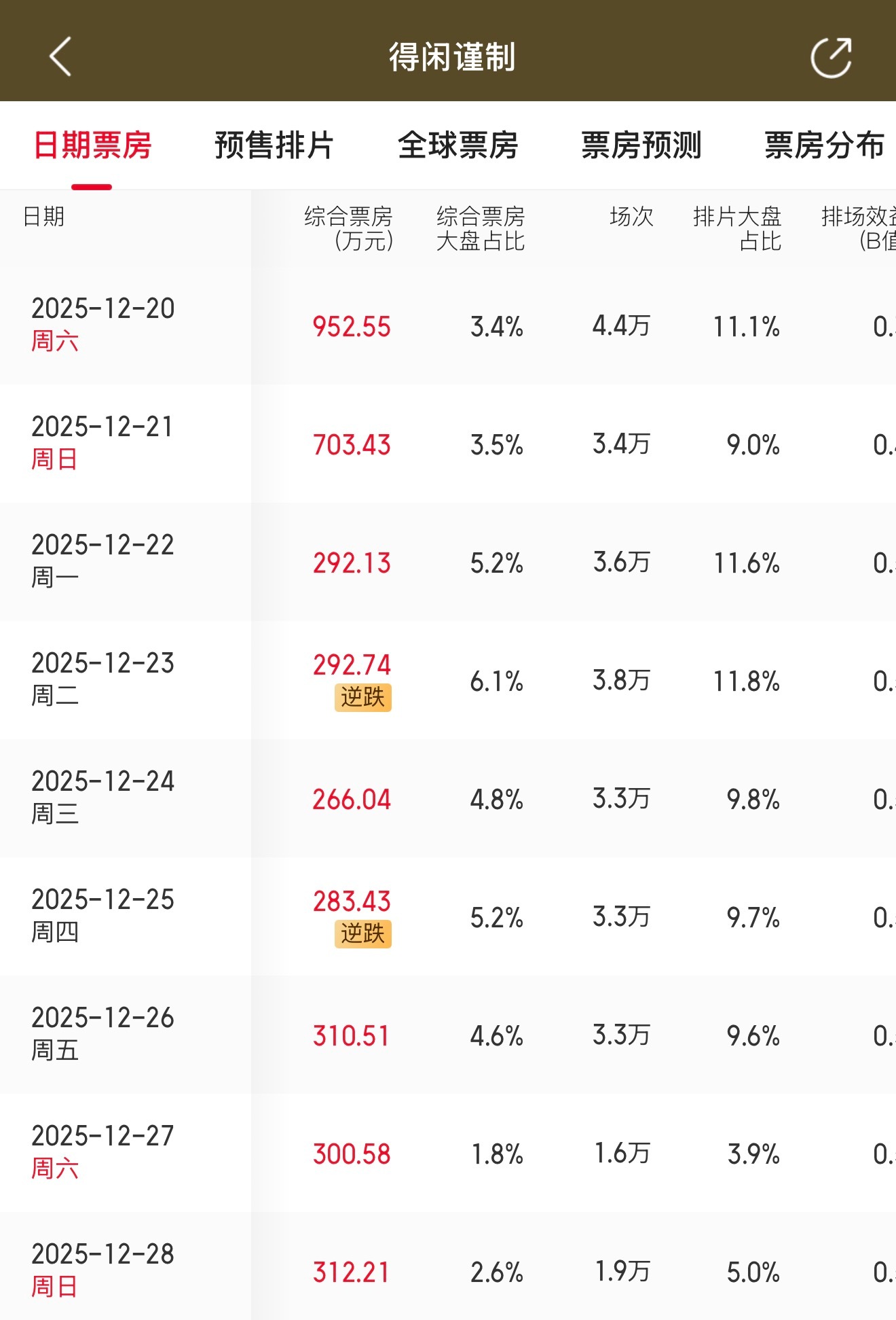 得闲谨制休息日票房逆跌 据猫眼专业版数据,电影《得闲谨制》单日票房突破312万,