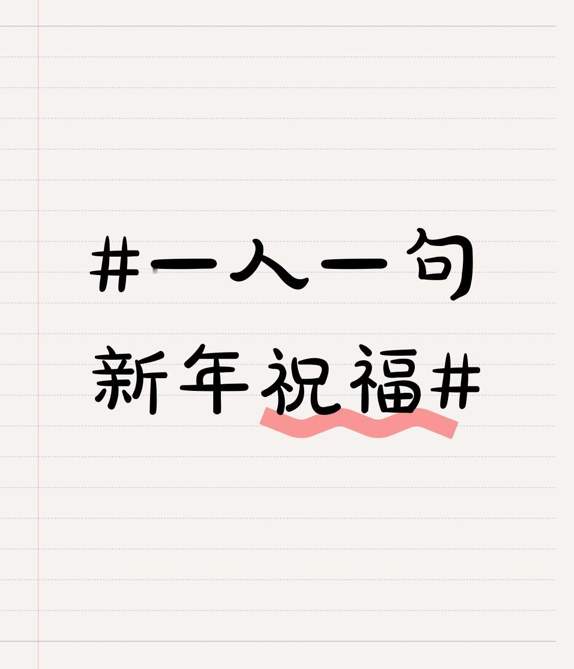 一人一句新年祝福 新的一年,愿你如展翅鲲鹏,在事业的天空自由翱翔,每一次搏击都收获满满的成就。身体健康似巍峨青山,扛住生活的风风雨雨。 家庭和睦温馨,笑声如春日暖阳,驱散所有阴霾。爱情甜蜜如酒,越陈越香,与爱人携手走过岁岁年年。 财务稳稳当当,兜里有钱心不慌,想买啥就买啥。同时,学会与生活和解,把平凡日子过成闪闪发光的诗,新的一年,一路生花!