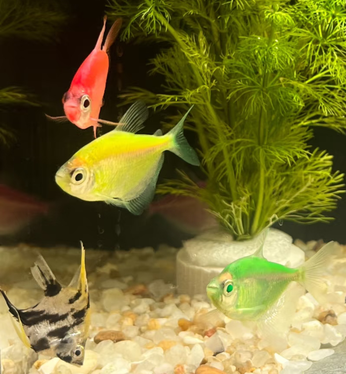 一缸小鱼,一年温柔相伴这一年,守着一缸荧光天使鱼和黑白神仙鱼,成了我最踏实的治愈日常。每天清晨蹲在缸前,看色彩斑斓的荧光小鱼成群结队穿梭,像一捧流动的彩虹撞进水里;慢悠悠的神仙鱼扇着轻纱似的鳍,不紧不慢跟在后面,宛如一群优雅的“随行卫士”。投喂时,它们齐刷刷围过来抢食的模样灵动又鲜活;闲暇时,看它们贴着缸壁吐泡泡、追逐嬉戏,满缸都是细碎的热闹。不用费心遛弯训宠,只需静静相伴,就能把日子过成温柔的模样。原来好好养宠不必轰轰烈烈,这一缸小生命的朝夕相守,就是岁月里最真切的圆满。晒出我的年度兴趣好好养宠的一年