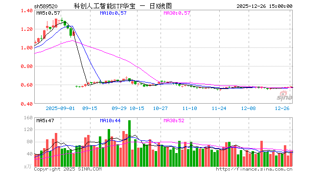 科创人工智能ETF华宝(589520)业绩比较基准为上证科创板人工智能指数收益率,管理人为华宝基金管理有限公司,基金经理为丰晨成、曹旭辰,成立(2025-03-05)以来回报为16.07%,近一个月回报为1.56%。