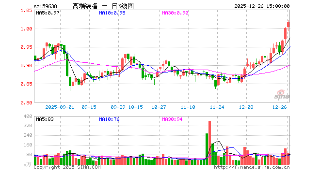 12月26日,高端装备ETF(159638)涨1.70%,成交额9602.25万元。当日份额减少2600.00万份,最新份额为19.22亿份,近20个交易日份额减少6200.00万份。最新资产净值计算值为19.51亿元。