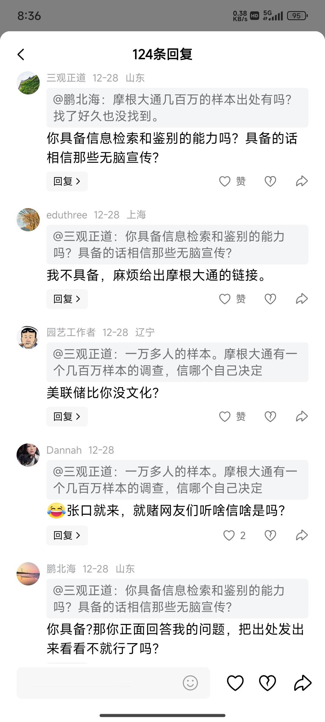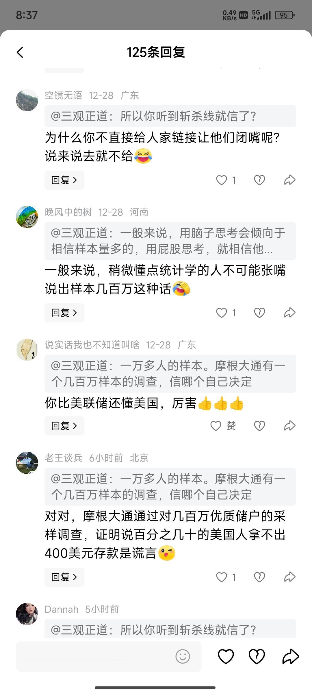 现在为美国挽尊,真不是件容易活了。没法拿出证据,只能胡搅蛮缠,嘴上说有个几百万样本的调查报告,结果和美联储出的37%拿不出400美元不一样。可前程他就是嘴上上,和别人争论,就是不肯上链接。明明是一个链接就能让人闭嘴的事,偏要叽里咕噜在那边说车轱辘话。