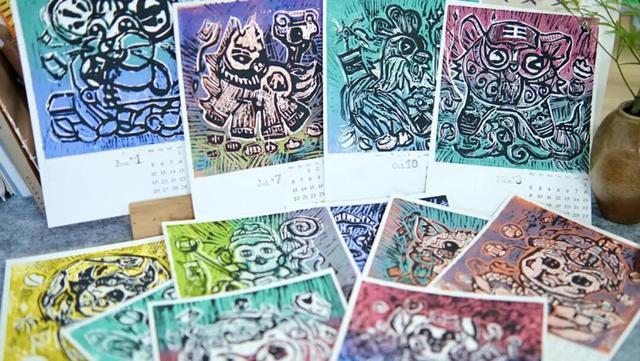 活动伊始,社团指导老师带领孩子们重温十二生肖的传统文化内涵,讲解不同生肖的外形特点与吉祥寓意。从活泼灵动的子鼠,到威风凛凛的寅虎,再到温顺敦厚的亥猪……孩子们结合自己对生肖的理解,展开天马行空的想象,勾勒出一张张各具特色的版画底稿。在刻版与印制环节,孩子们化身小小艺术家,手持刻刀专注雕琢,小心翼翼地处理每一处线条与纹理,将生肖的神韵融入木板之上。油墨辊滚动间,色彩均匀铺展,纸张覆上木板轻压,一幅幅线条明快、色彩饱满的生肖版画跃然纸上。随后,孩子们将印制好的生肖版画精心裁剪,一份份独一无二的版画台历就此诞生。
