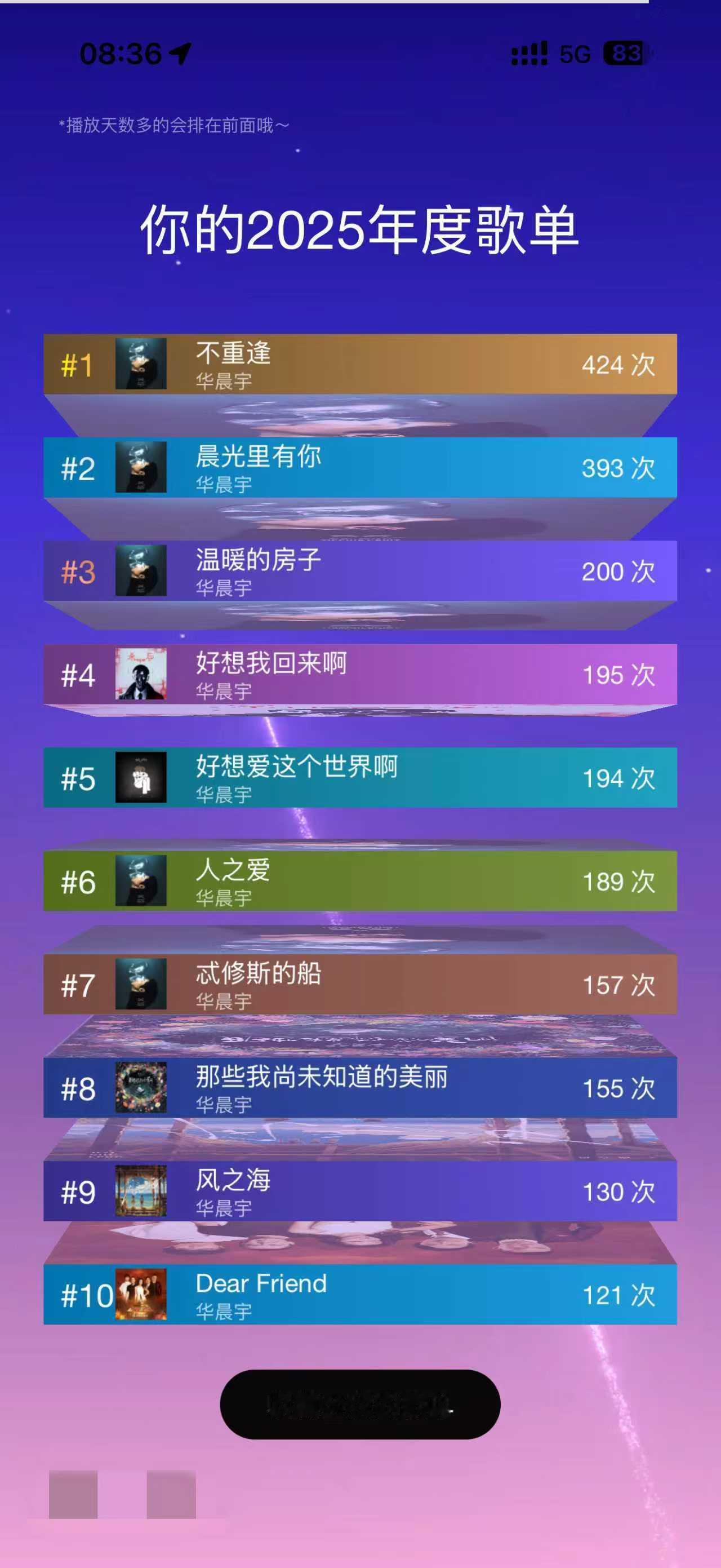 年度报告华晨宇含量极高相信今天很多人的年度报告华晨宇含量极高吧,毕竟花花2025
