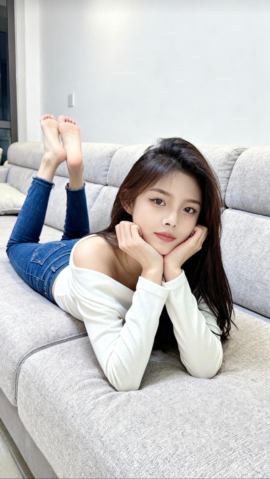 慵懒午后,独自坐在沙发上,享受宁静时光。