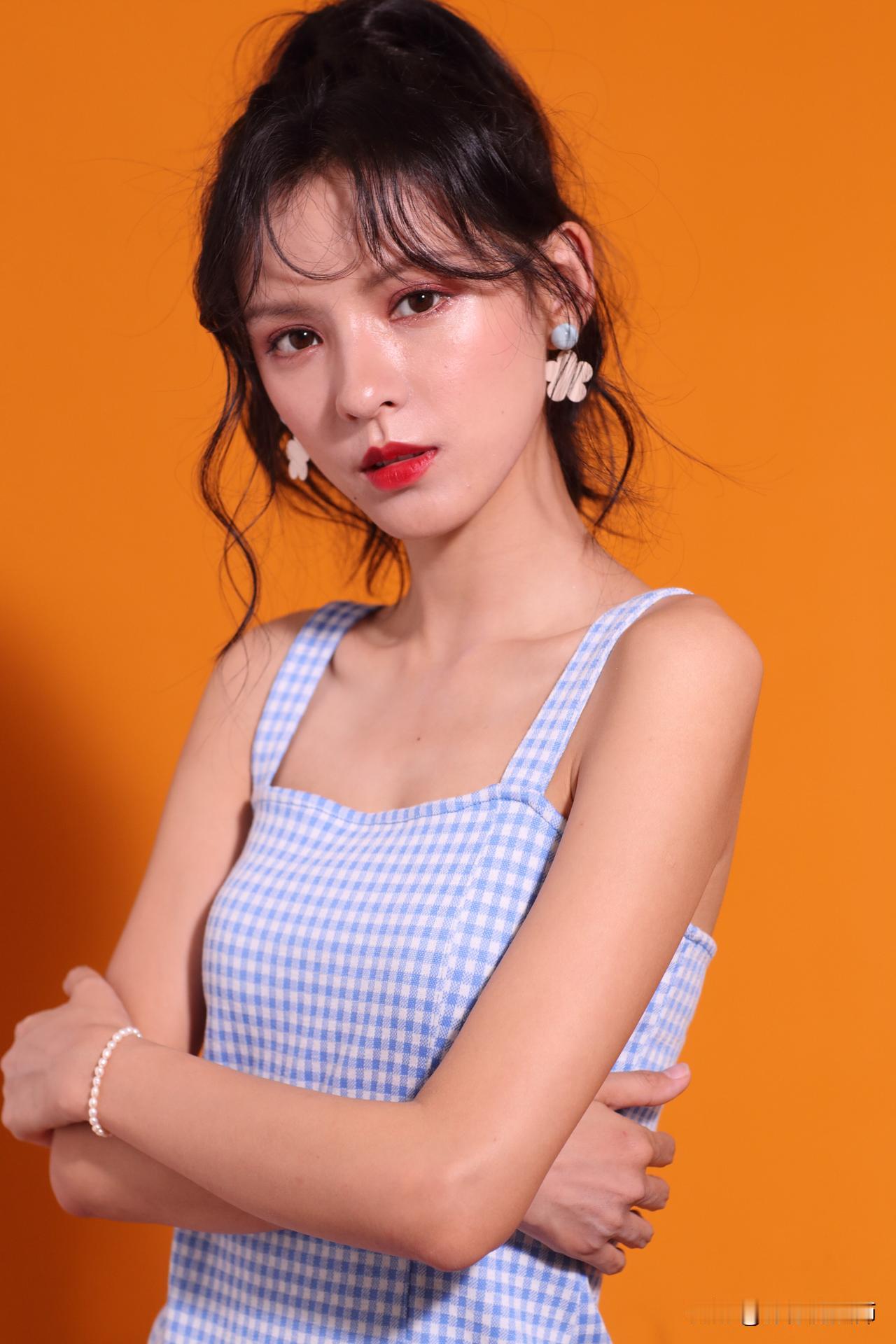 当明橙色背景撞上蓝白格吊带裙,张予曦将夏日调成了一杯气泡感的橘子汽水。高马尾垂落细碎卷发,花朵耳饰随着眸光轻颤,红唇衬得肌肤如剥壳鸡蛋般透亮,每一帧都在诉说「少女感」的永恒魔法。 她或托腮凝望,或侧颜浅笑,颈间线条在吊带勾勒下舒展成诗,珍珠手链在腕间折射温柔光晕。橙色浪潮里,格纹是永不褪色的青春符号,而她的存在,本身就是一场关于「明媚」的独家放映——无需刻意摆拍,慵懒姿态里藏着对夏日最本真的诠释:热烈、鲜活、甜而不腻。张予曦壁纸