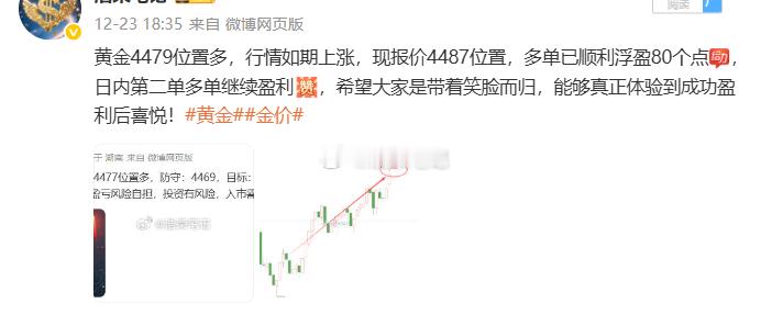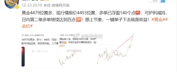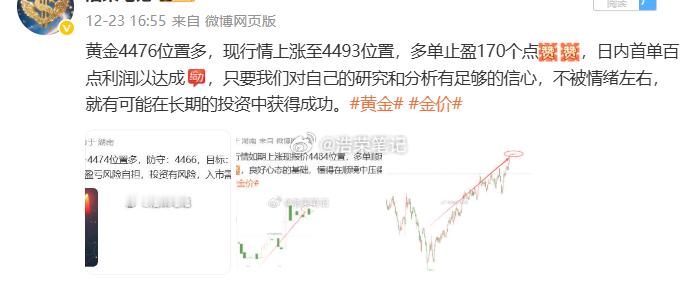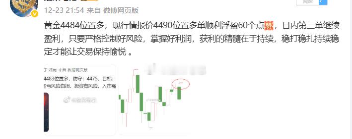 2025.12.23日周二操作记录总结!黄金4476位置多,在4493位置获利170个点利润黄金4479位置多,在4493位置获利140个点利润黄金4484位置多,在4490位置获利60个点利润黄金4448位置空,在4435位置获利130个点利润博文公布4单,全部盈利,共斩获500点利润,市场没有绝对,涨跌没有定势,所以,对市场行情的涨跌平衡判断就是你的制胜法宝黄金 金价 !