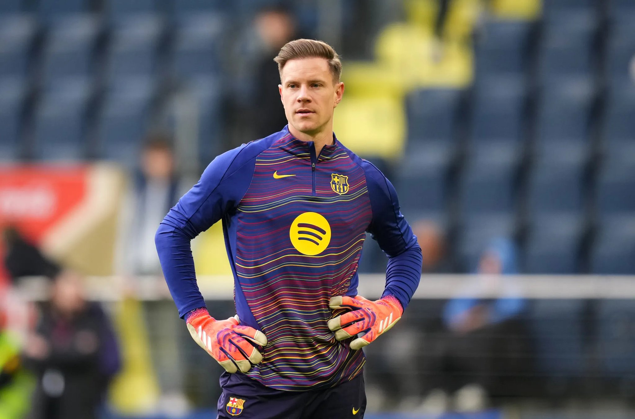 此前他在国王杯对阵瓜达拉哈拉的复出并非无足轻重的表态,而是有力的自我证明。当多数人认定什琴斯尼将稳坐主力时,特尔施特根用实际行动宣告自己仍未放弃竞争。这份坚守佐证了这位门将并未接受被边缘化的命运。他的合同持续至2028年(2023年10月续签),至少现阶段他无意放弃既有的合约,尤其考虑到续约时他曾接受延迟支付部分薪资以帮助俱乐部完成球员注册。