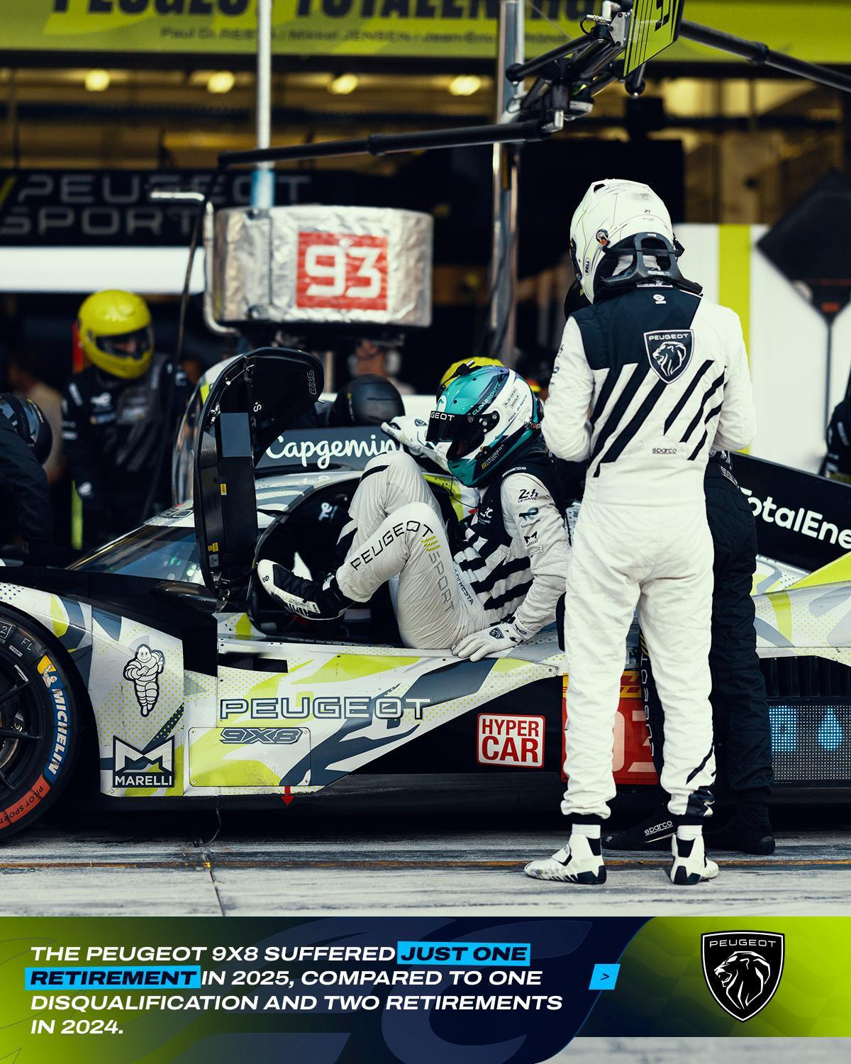 2025赛季WEC Hypercar组小结:标致篇~标致在2025赛季早段的表现依然比较挣扎,只能为积分而战;这个情况来到下半赛季有所改善,尤其在富士双车登台可算是全年最高光的赞,而全年前十名次数和退赛次数都相比2024赛季有所进步。然而,标致9X8项目依然在艰难中前行,现阶段的Evo Joker已经全部用完,但赛车仍需要相对友好的BoP才能获得竞争力。另外早前车队也透露会选择继续使用9X8平台而非重新开发新赛车,事关ACO和FIA往后可能会针对落后者给出额外的Evo Joker配额,不过这起码在2026年是不会有了,所以来年标致在WEC,大概率还是荆棘满途的剧情。📈 FIA WECWEC世界耐力锦标赛标致赛车