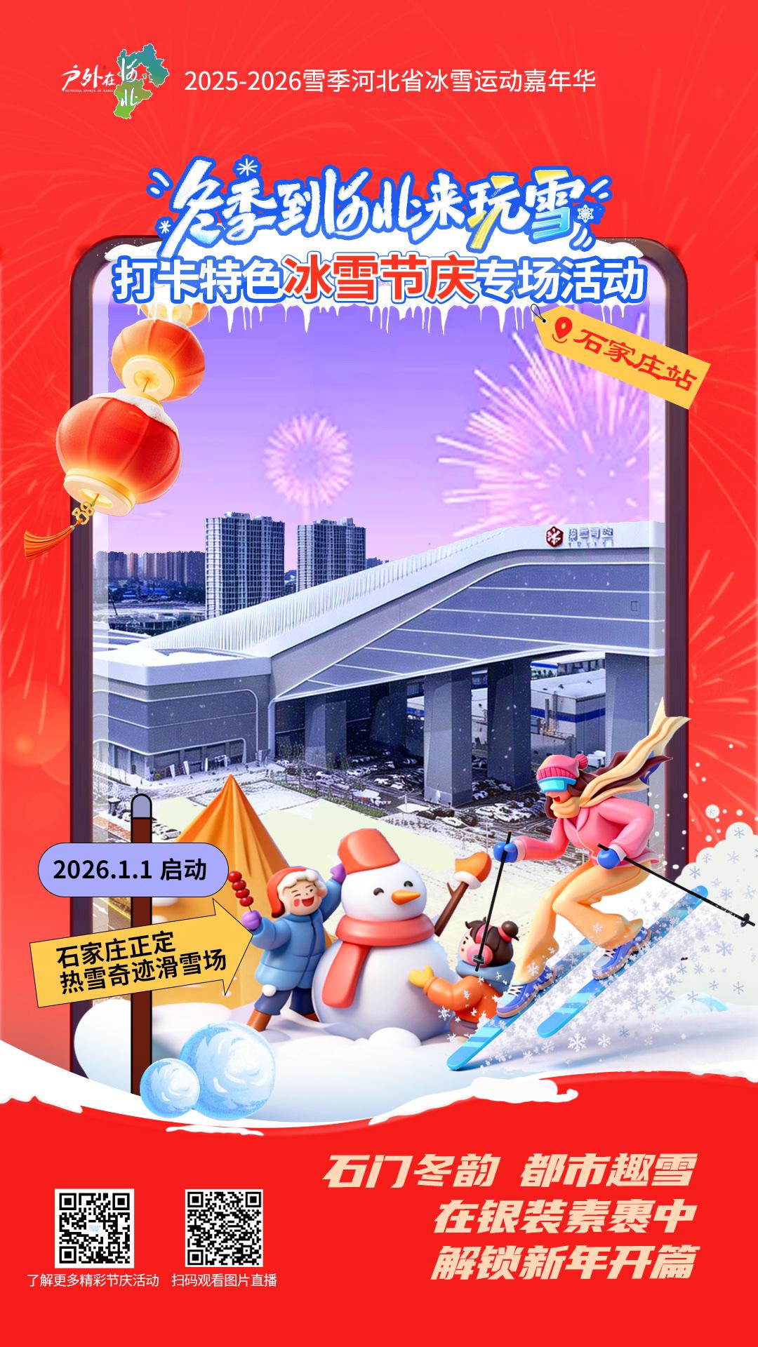 【石家庄发出热雪江湖令冬季到河北来玩雪,打卡特色冰雪节庆!石家庄邀您共赴一场兼具冰雪激情与民俗韵味的冬日盛会!】冬季到河北来玩雪岁末将至,雪兴正酣!这个元旦,2025-2026雪季河北省冰雪运动嘉年华“冬季到河北来玩雪 打卡特色冰雪节庆”专场活动(石家庄站)暨石家庄第七届冰雪运动会将在正定热雪奇迹滑雪场开启。本站专场活动将整合石家庄“一家冰场+八家雪场”优质冰雪场馆和赛事活动资源,打造“冰雪+”消费新场景,让冰雪运动爱好者在银装素裹中感受冰雪激情、体验节庆魅力、畅享惠民福利。 专场活动现场将设立“石家庄冰雪嘉年华资源联动推介展”,集中展示石家庄滑冰场、正定热雪奇迹滑雪场、西部长青滑雪场、正定冰雪嘉年华、东方巨龟苑冰雪乐园、西柏坡温泉滑雪场、无极山滑雪场、秦皇古道滑雪场、南高基滑雪场等冰雪场馆资源,现场更有惠民折扣、专项优惠、定制滑雪套餐等多重福利重磅释放,诚意邀您畅玩冰雪。 “冬季到河北来玩雪 打卡特色冰雪节庆”专场活动(石家庄站)将持续至2026年2月。专场活动开启当日,热雪迎新季-正定热雪奇迹首届大众趣味滑雪赛、亲子趣味雪上运动会等赛事活动将在石家庄正定热雪奇迹滑雪场举行。另外,一系列特色冰雪赛事活动也将在各大冰雪场馆陆续上演,既有河北省大众滑雪积分赛、石家庄第七届冰雪运动会、裕彤体育冰球邀请赛等冰雪赛事,又有石家庄中小学研学季(冬令营)、“冰雪过大年”亲子运动会、石家庄市农民冰雪趣味活动等冰雪休闲活动。 冰雪燃情,新元启封。让我们奔赴石家庄,开启一场兼具冰雪激情与民俗韵味的新年冰雪狂欢!