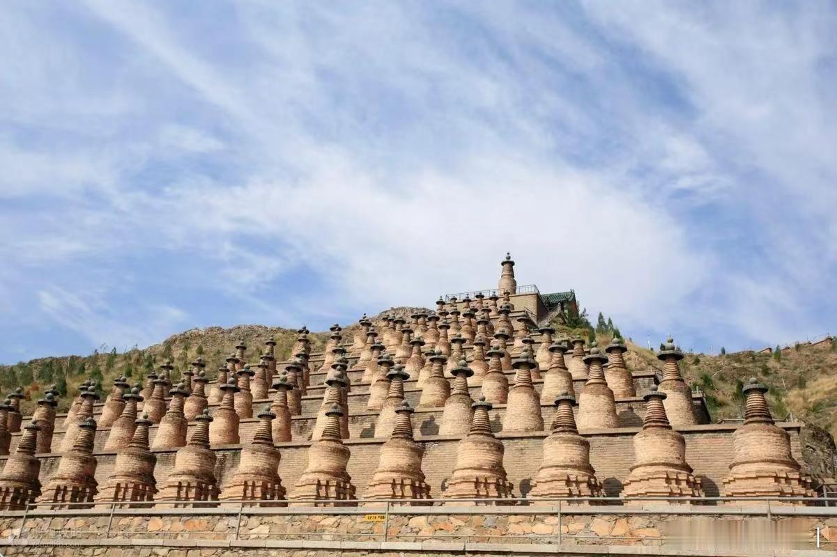 消除烦恼的青铜峡108塔宁夏青铜峡108塔是始建于西夏时期(公元1038-1227年)的喇嘛式实心塔群,坐落于青铜峡水库西岸的山坡上,面临黄河,是中国现存规模最大、布局最规整的喇嘛塔群之一。塔群依山势分12级台阶建造,按1、3、5、7、9…19的奇数规律排列成12行,整体呈等腰三角形,总计108座,故名“一百零八塔”。塔体结构多样,基座有十字折角形和八角束腰须弥座两种,塔身分为覆钵式、葫芦形、圆筒状和折腹式四种,最高处的单塔高约5米,其余高2.5-3.5米,展现了西夏藏传佛教建筑的独特技艺。108塔的建造蕴含深厚的佛教文化。佛教认为人生有108种烦恼,建塔意在消除烦恼,当地流传“数一塔消一愁,数尽塔群无忧愁”的俗语。考古发现证实,塔群下曾出土西夏文帛画《千佛图》、佛经残卷等文物,为研究西夏佛教艺术提供了关键实物。此外,塔群正对黄河古渠口,可能兼具镇河安澜的水利功能,反映了西夏时期佛教信仰与实用主义的结合。