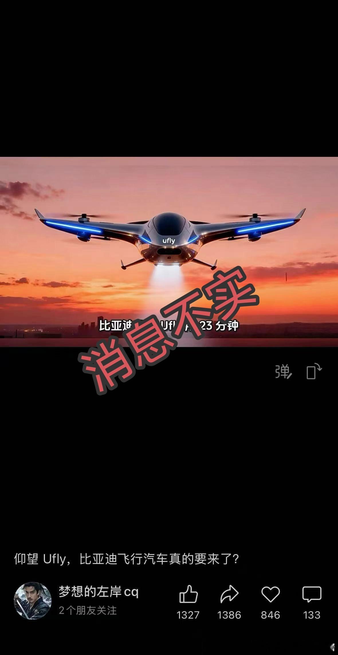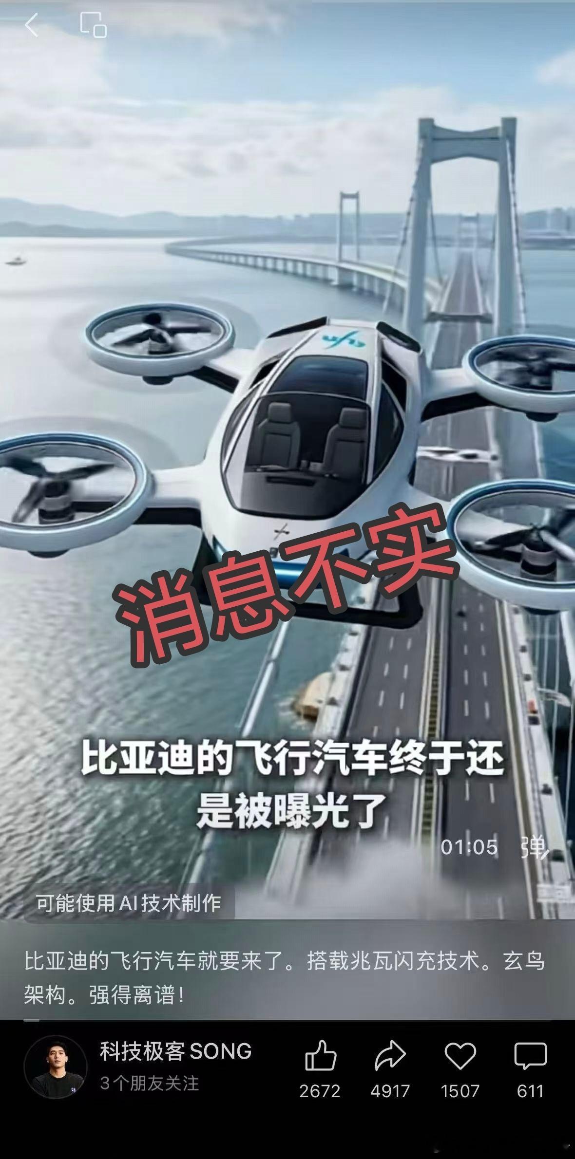 比亚迪澄清:没有推出飞行汽车的计划和安排这些自媒体就别造谣了倨能聊比亚迪
