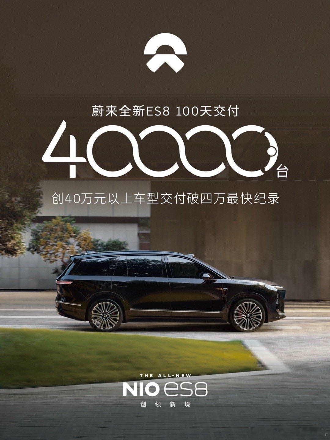 蔚来全新ES8百天交付4万台蔚来全新ES8产品力不错价格也不错最重要的是它在同级别很少有对手平均每月交付一万台的成绩也可喜可贺总的来说产品出色 价格出色 懂得用户需求就一定能得到正反馈恭喜蔚来。
