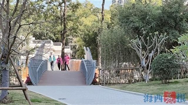 据了解,该天桥为人行钢结构桥梁,于2025年2月底开工建设。天桥全长约20米、宽3.4米,桥梁两侧采用流线型弧形铝板饰面,桥面铺设高耐竹木板,兼顾环保性与耐久性。厦门市筼筜湖保护中心工作人员介绍,作为衔接南湖公园东西两翼的重要通道,该天桥与筼筜湖环湖步道实现有机衔接,进一步优化了园区内部慢行系统。