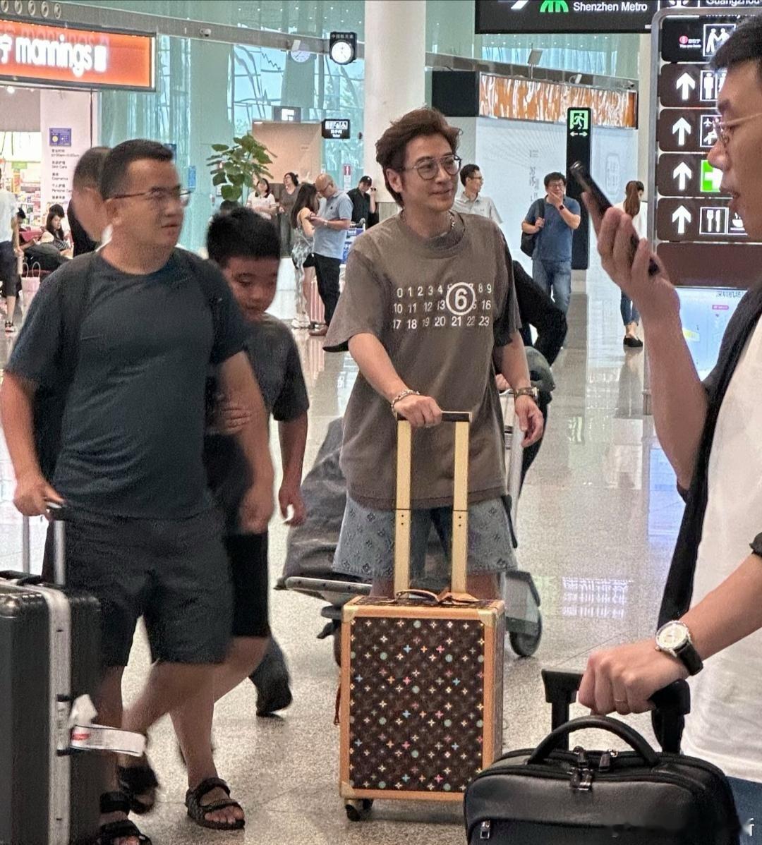 52岁孙耀威现身深圳机场,他一个人拖着行李箱,打扮年轻帅气,个子有点显矮,目测只