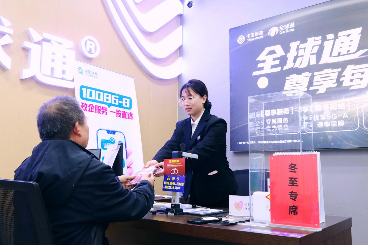 为更好地服务冬至期间到厅的客户,营业厅特别设立“冬至关爱专席”,为老年客户提供绿色通道,配备老花镜、暖手宝等便民物品。工作人员耐心指导手机使用、解答业务疑问,并普及防诈骗知识,守护老年人“钱袋子”。“来了就能办,不懂有人教,服务真贴心!”客户满意地说道。